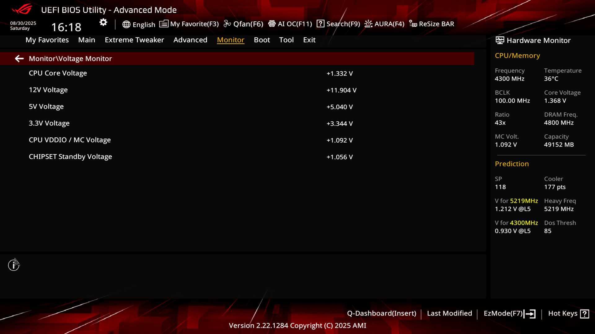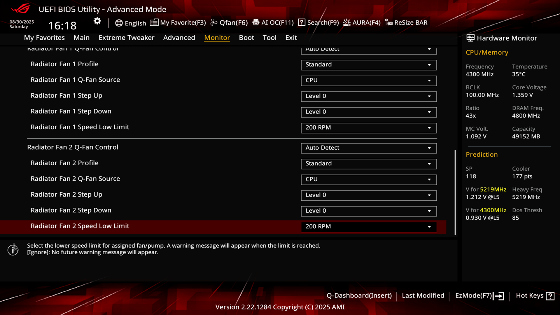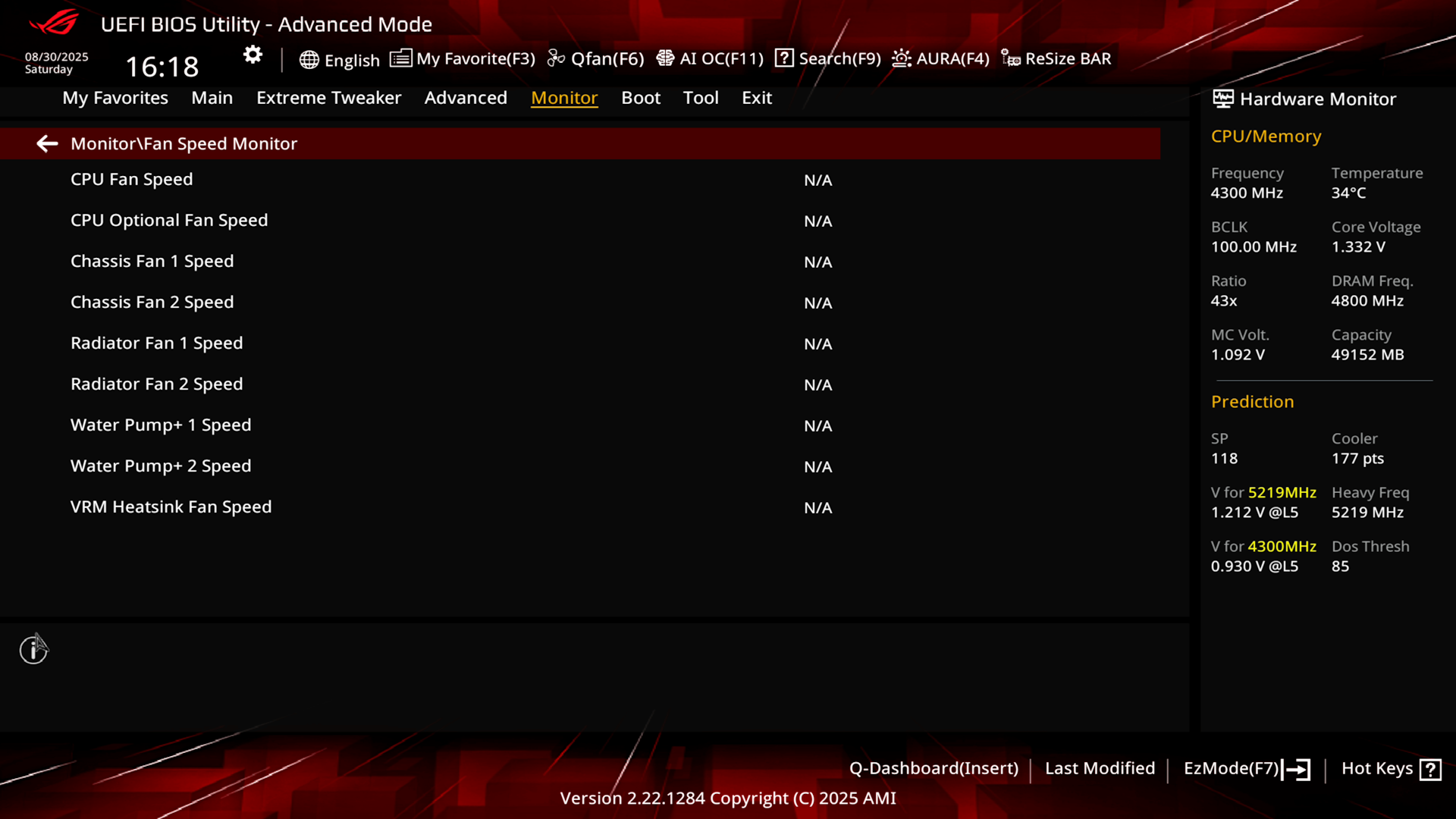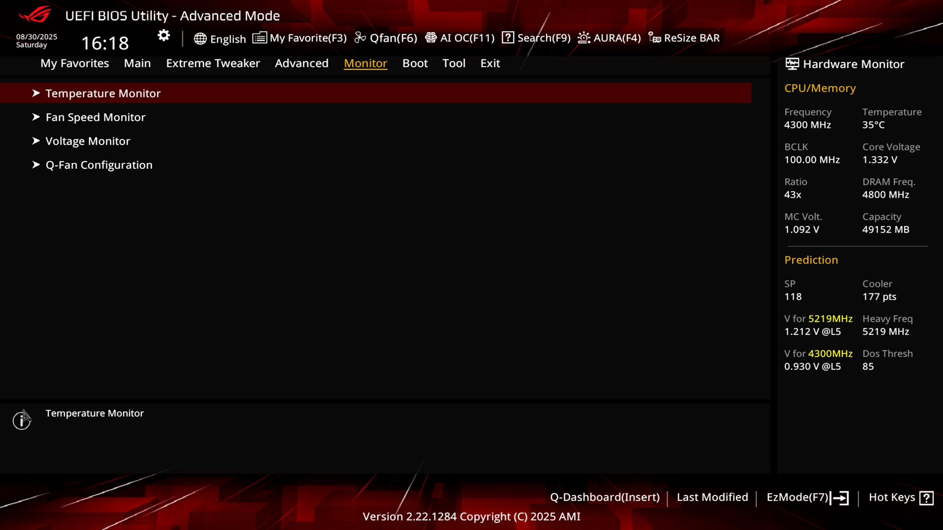 Вкладка Monitor: здесь собраны воедино все показатели температур, напряжений, оборотов вентиляторов. Присутствует управление системными вентиляторами и их алгоритмами работы.