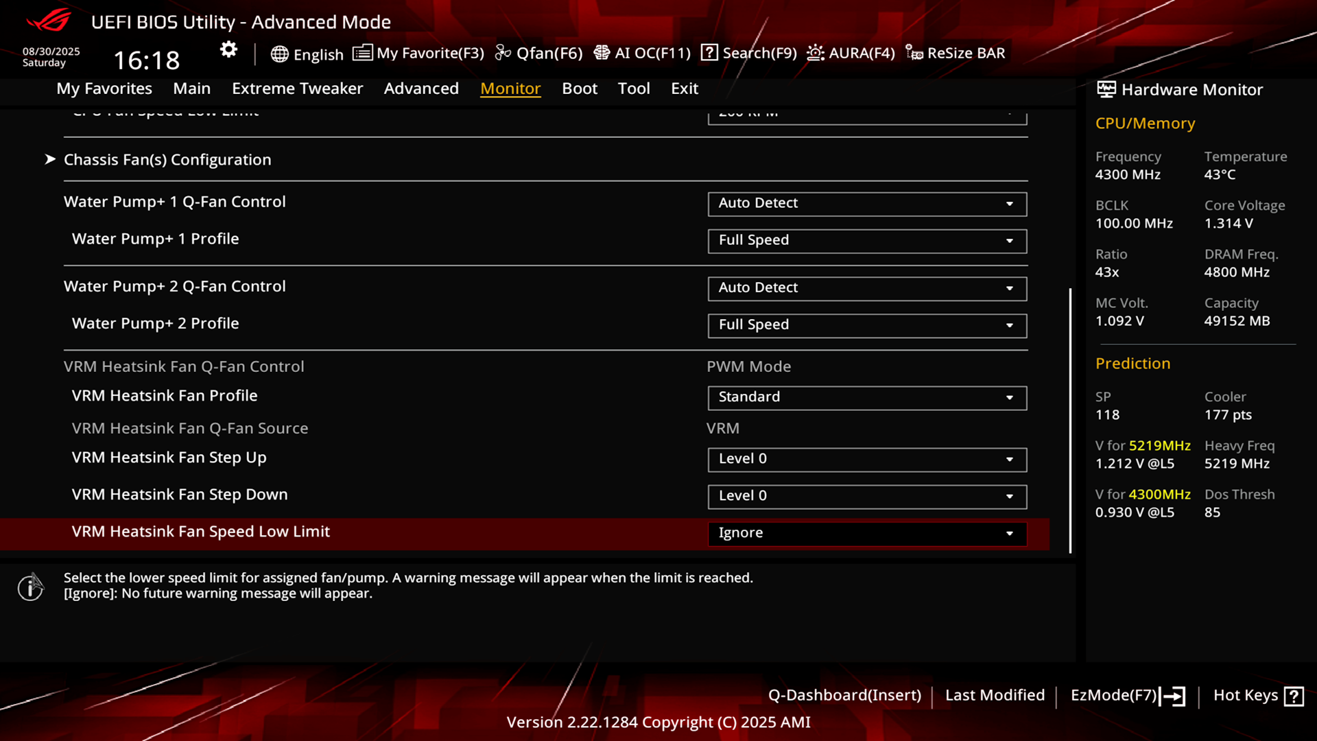 Для улучшения температурного режима зоны VRM производитель добавил в комплектацию ROG Fan Kit. С нижнего края зоны I/O монтируется кронштейн с вентилятором, который нагнетает воздух внутрь бокового радиатора. Вентилятор подключается к проприетарному разъему VRM_HS_FAN. Управлять алгоритмом его работы возможно через соответствующие опции в UEFI материнской платы. Модель: Sunon MF30061V1 (MagLev).