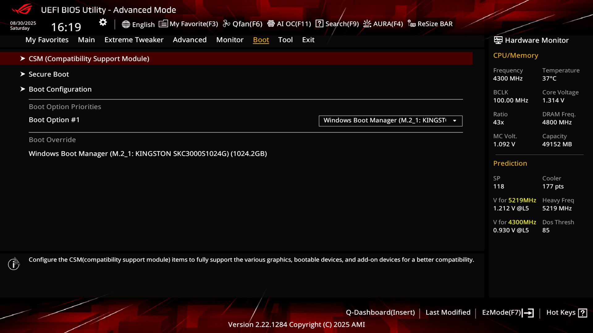 Вкладка Boot: органы управления общим процессом старта системы, CSM, Secured Boot, а также приоритета загрузки с накопителей или сети.