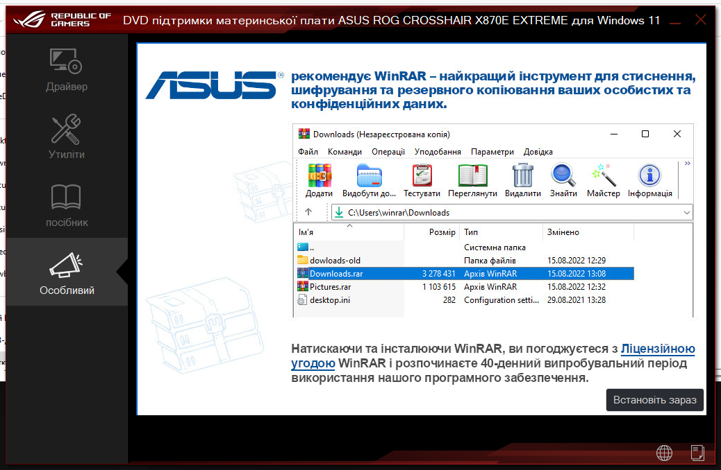 | Дополнительное | ROG CPU Z, Dolby Atmos, AIDA64 Extreme (лицензия 1 год), ESET Internet Security (лицензия 1 год), HWiNFO, WinRAR (демо 40 дней), Adobe Creative Cloud (бесплатное демо) |
