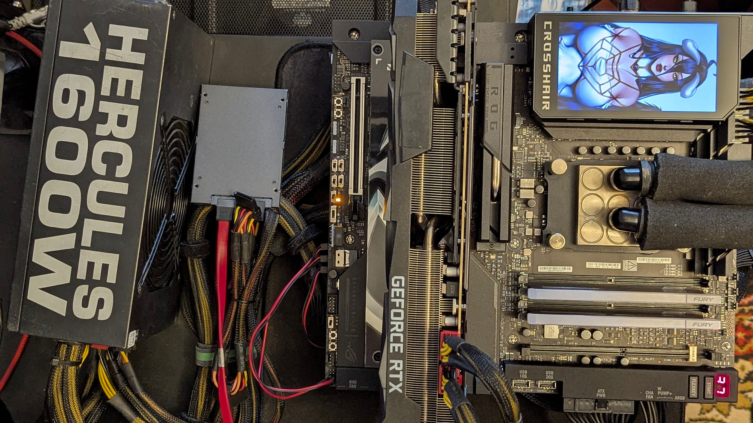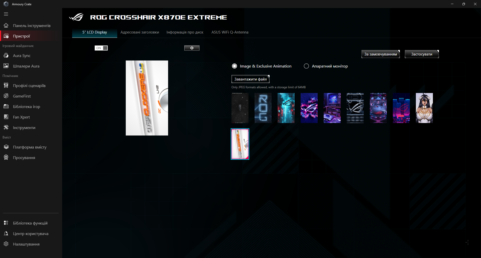 Конечно же его можно перевести в декоративный режим, который будет крутить анимации, или показывать статические изображения. Все верно, люди высокой культуры могут продемонстрировать всем свою вайфу прямо на радиаторе зоны I/O. Инновации 2025 года и материнской платы за около 50000 гривен! Однако следует помнить, что углы обзора у этого дисплея не самые лучшие.