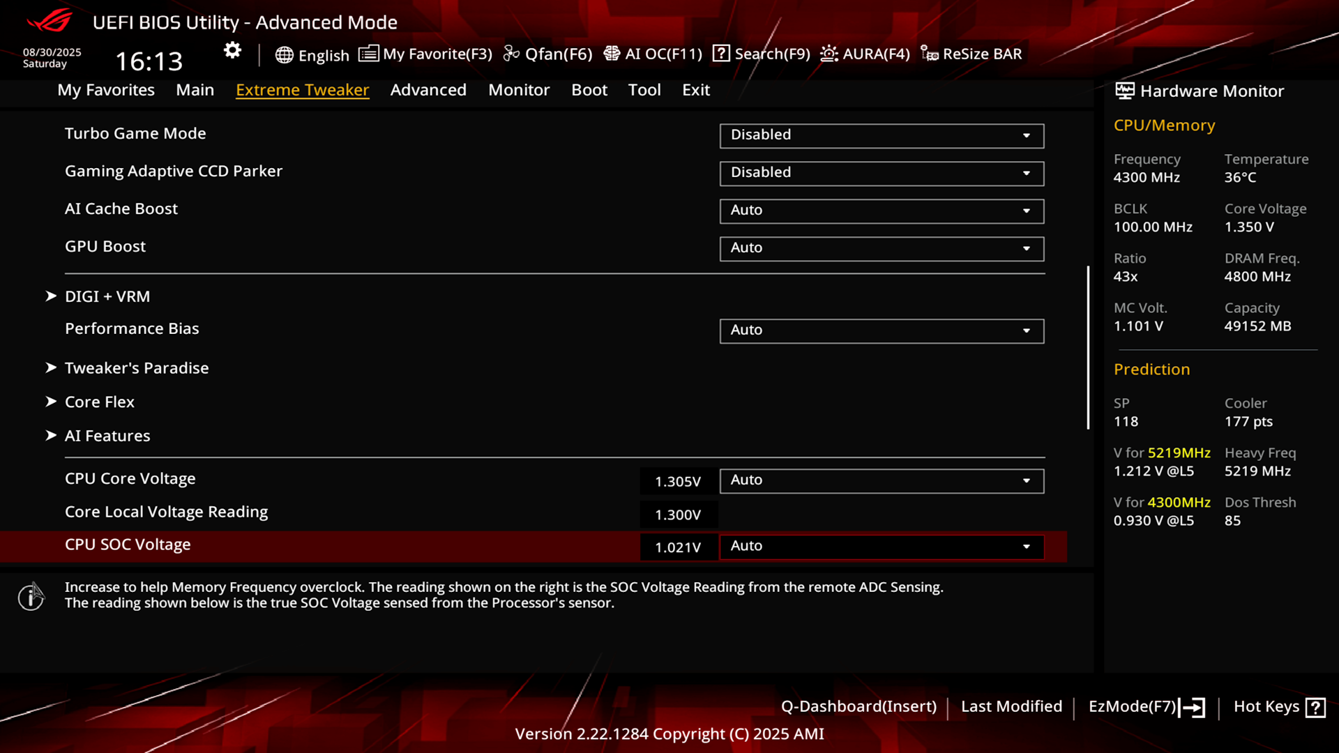 | CPU SOC Voltage (V) | 0,625–1,3 | 0,005 |