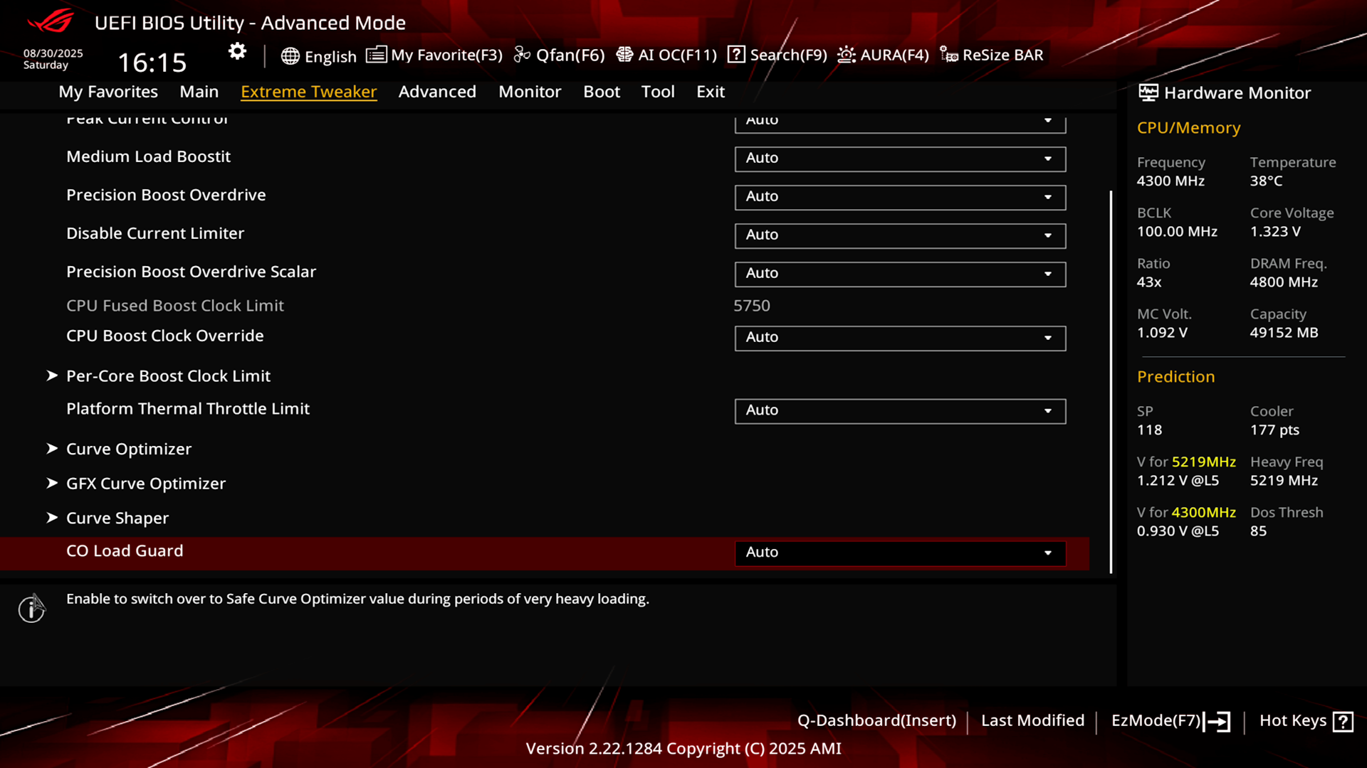 В режиме нагрузки при типичных настройках материнская плата ASUS ROG Crosshair X870E Extreme обеспечила среднюю частоту ядер на уровне 5038,1 МГц с максимальным ускорением одного ядра до 5669,8 МГц.