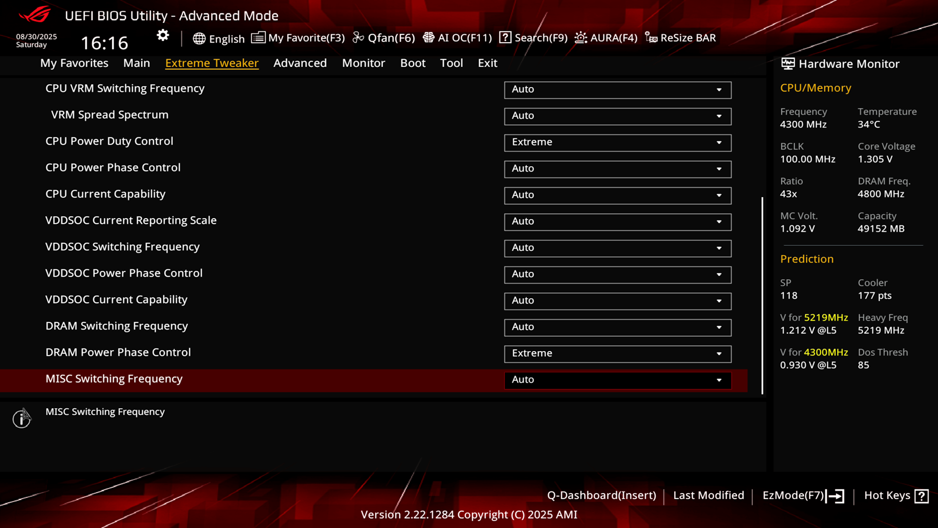 | Fixed CPU VRM Switching Frequency (KHz) | 500–650 (800 LN2) | 50 |