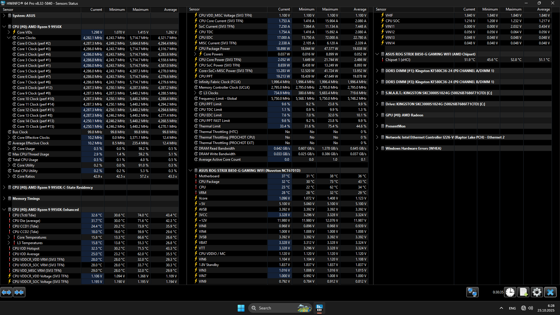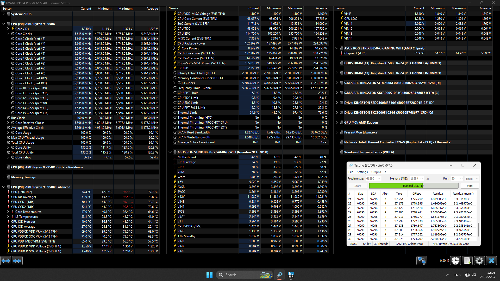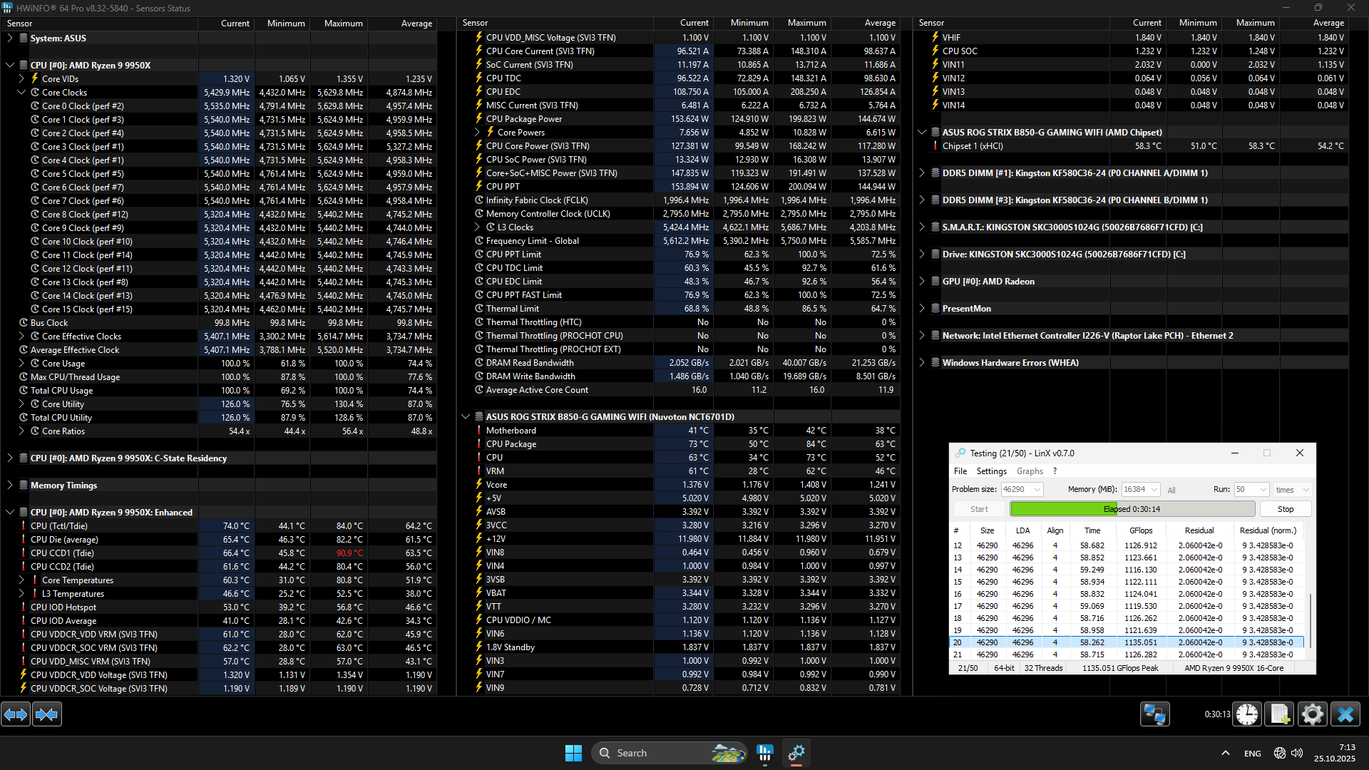 ASUS ROG Strix B850‑G Gaming WiFi успешно прошла весь спектр экспериментов с оверклокингом на флагманском процессоре Ryzen 9 9950X, выжав из него ускорение до 5755 МГц. При таком разгоне VRM еще имел запас температур для дальнейших экспериментов, то есть плата гарантированно сможет принять на борт процессоры следующих поколений, даже если они окажутся более горячими и мощными. Помимо элегантного внешнего вида пользователь получит в свое распоряжение PCIe 5.0 для накопителей и видеокарты, Wi-Fi 7, Ethernet 2.5G, отличное интегрированное аудио, USB 3.2 Gen 2×2. Останется только дополнить эту плату подходящими ей компонентами.