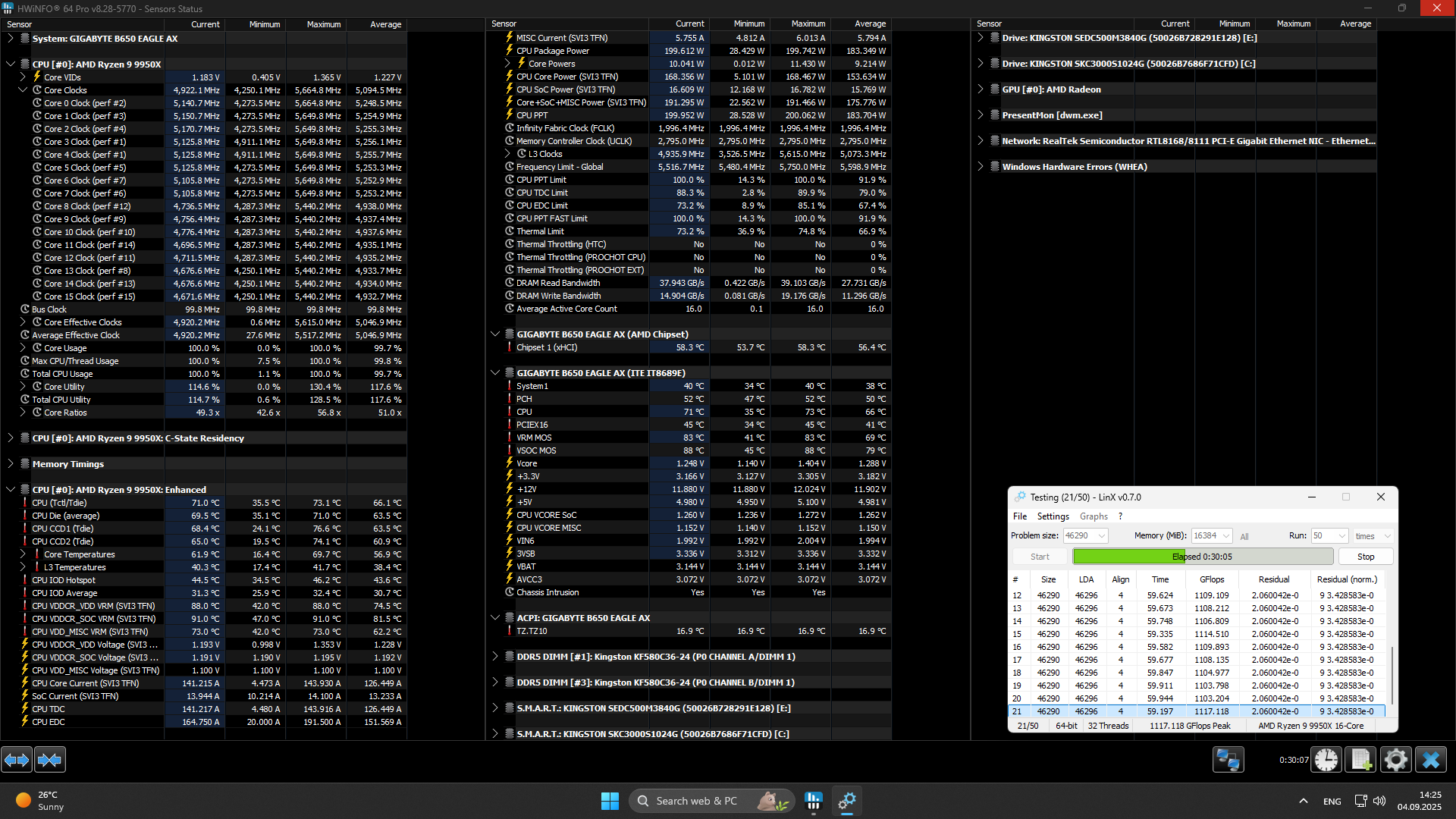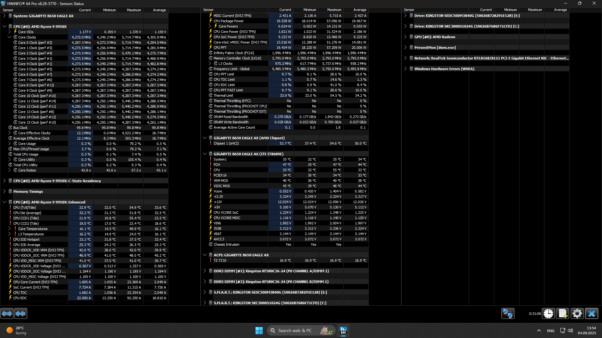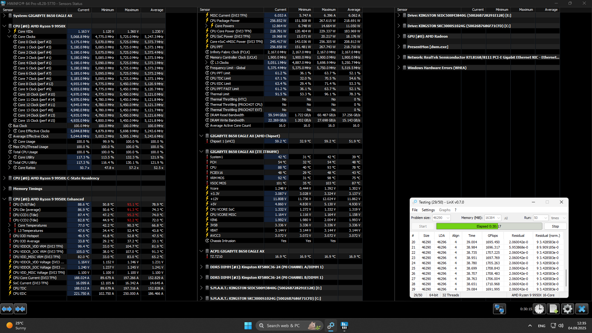 - материнская плата: GIGABYTE B650 Eagle AX (UEFI F36a);