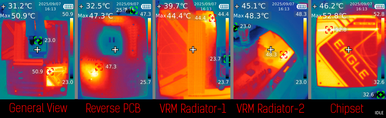 Температура в помещении удерживалась на уровне 25 градусов по Цельсию. Измерение энергопотребления процессора происходило через прямой замер EPS12V с помощью BENCHLAB (опрос датчика каждые 100 мс). Измерение температуры фиксировалось по программным датчикам HWINFO, а также с термофото, которое было выполнено тепловой камерой UNI‑T RX-600. Тест представлял собой забег 30 минут LinX 0.7.0 AMD (problem size 46290). Каждый бенчмарк запускался пять раз, в результатах указано среднее арифметическое. Игры тестировались на заводских пресетах минимального качества в стандартных бенчмарках. Counter-Strike 2 тестировался на карте мастерской CS2 FPS BENCHMARK.