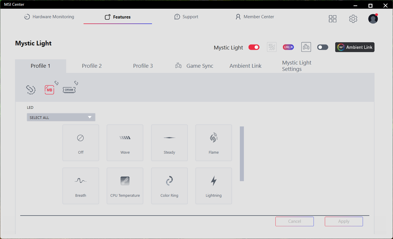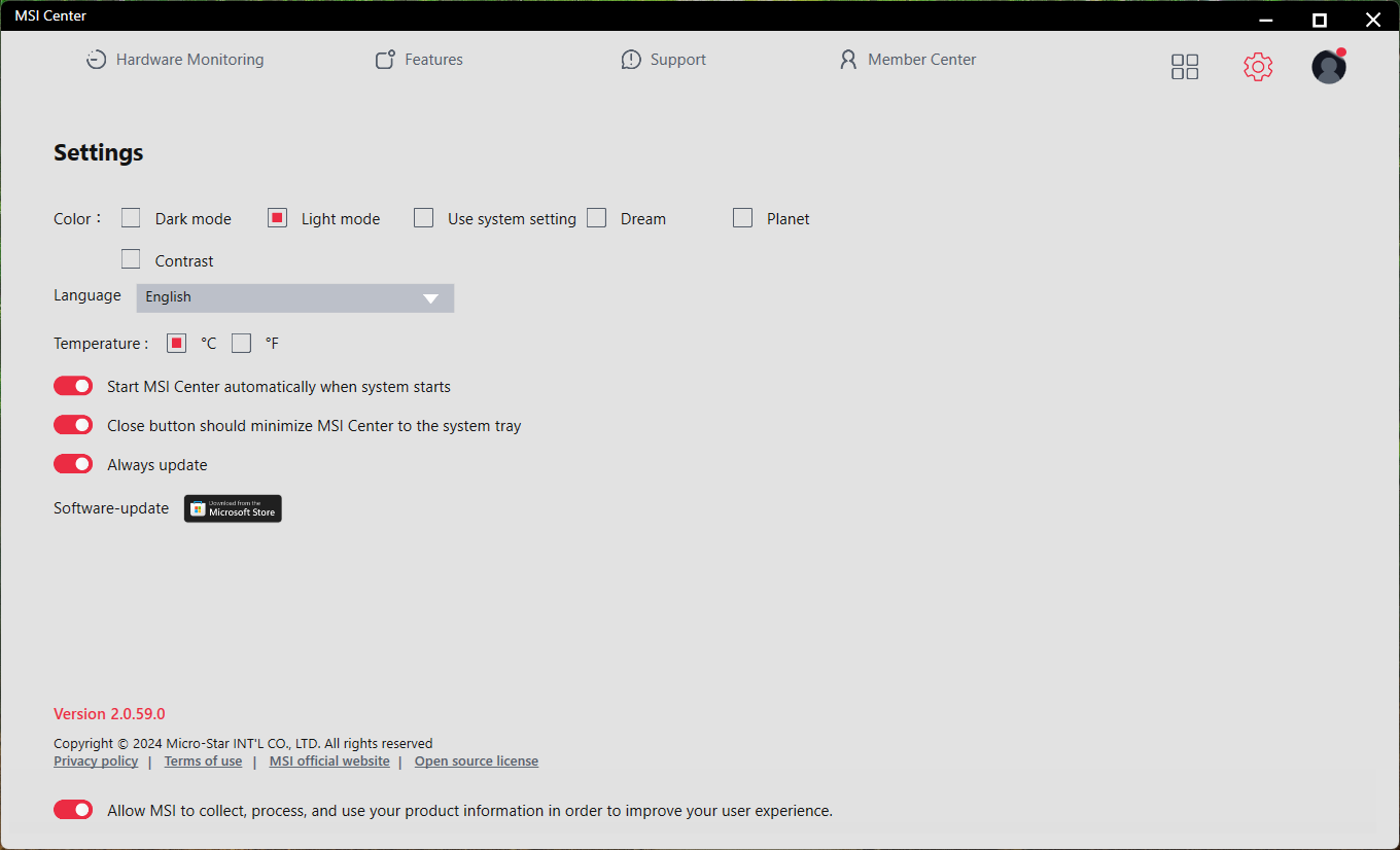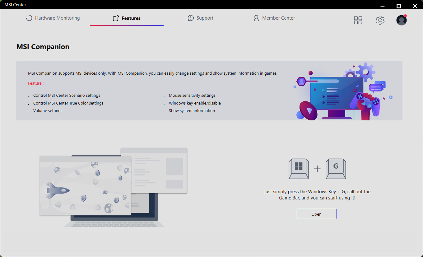 Главное ядро фирменного ПО производителя — MSI Center. Это модульное приложение, которое пользователь самостоятельно настраивает под свои задачи. Оно может быть простым средством мониторинга системы и материнской платы, но при необходимости — превратится в функциональный программный комплекс с богатыми возможностями.