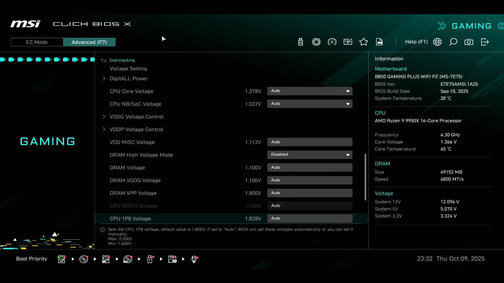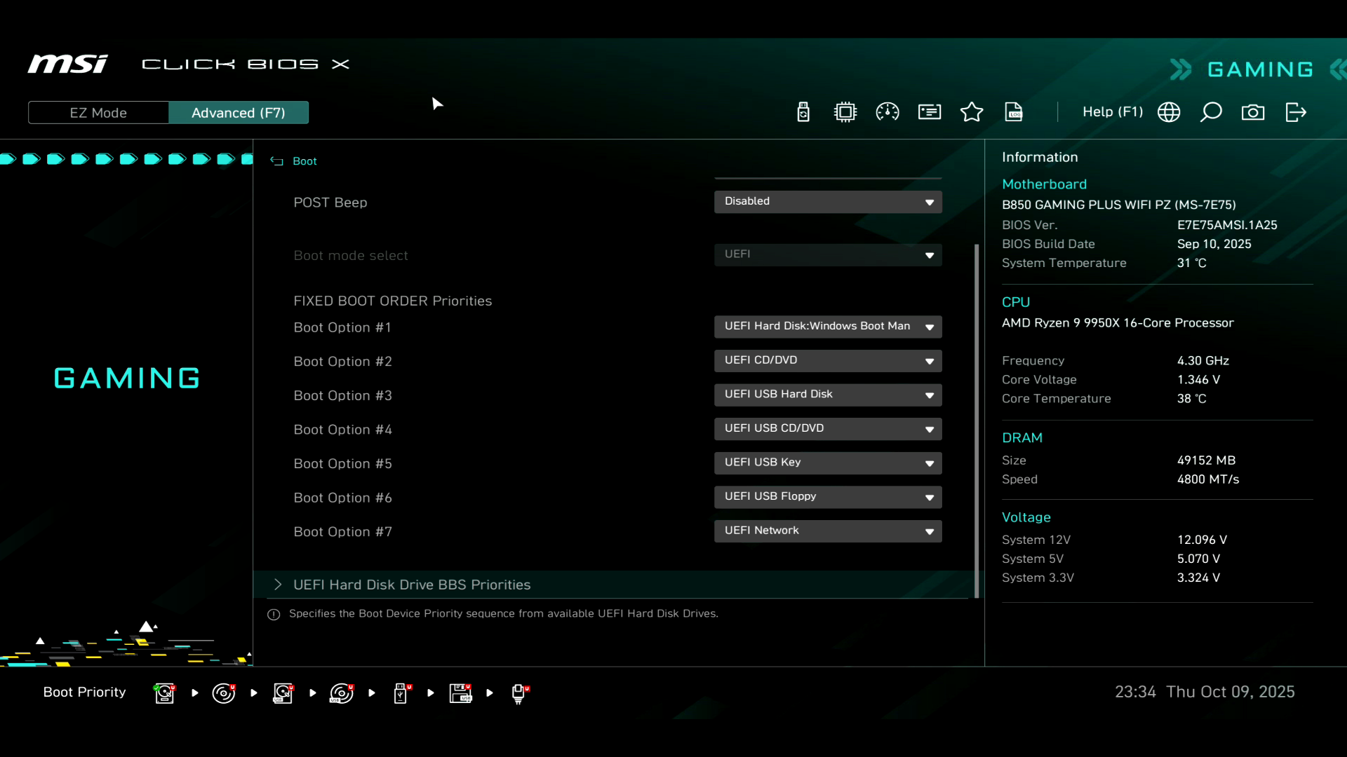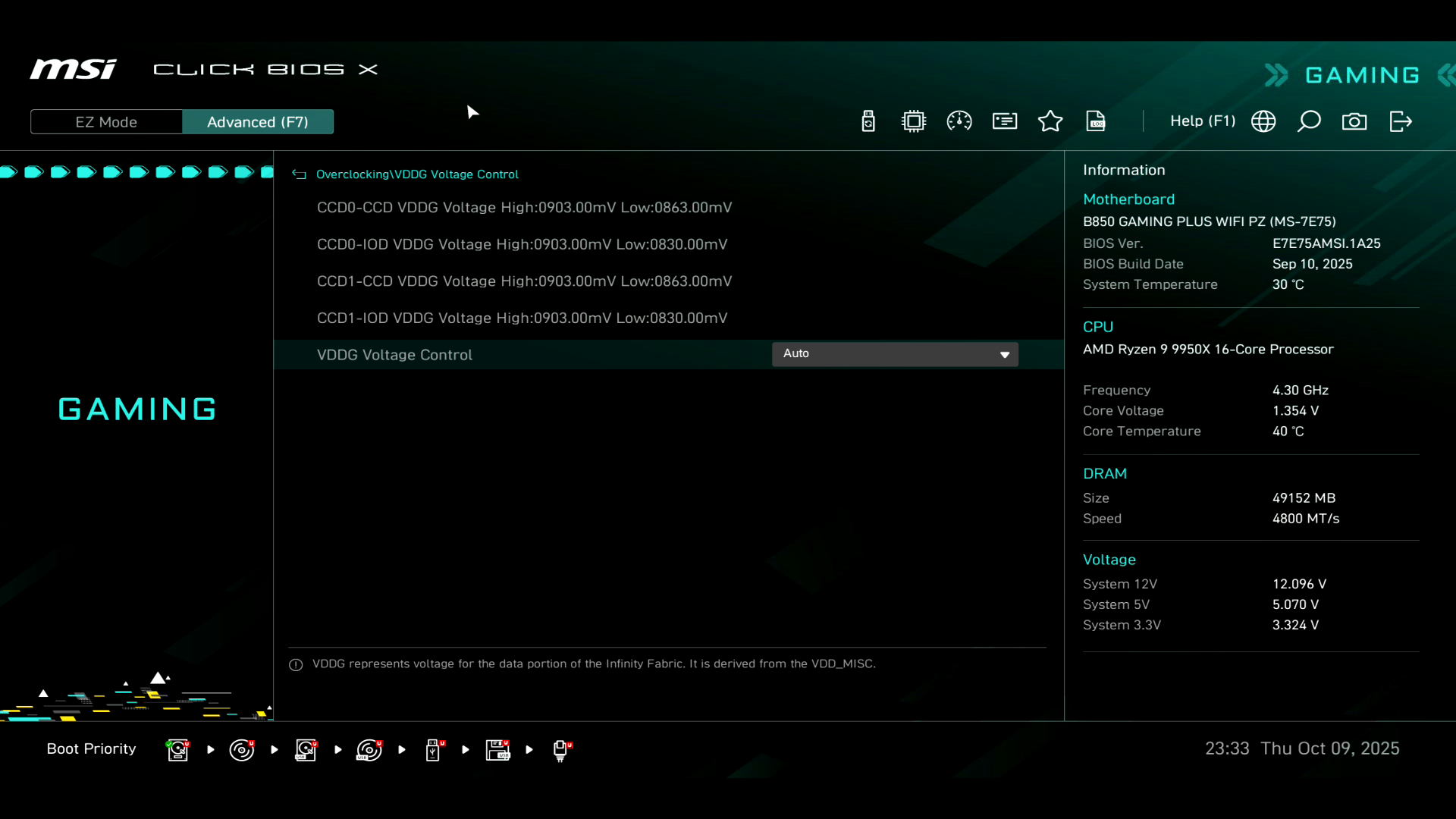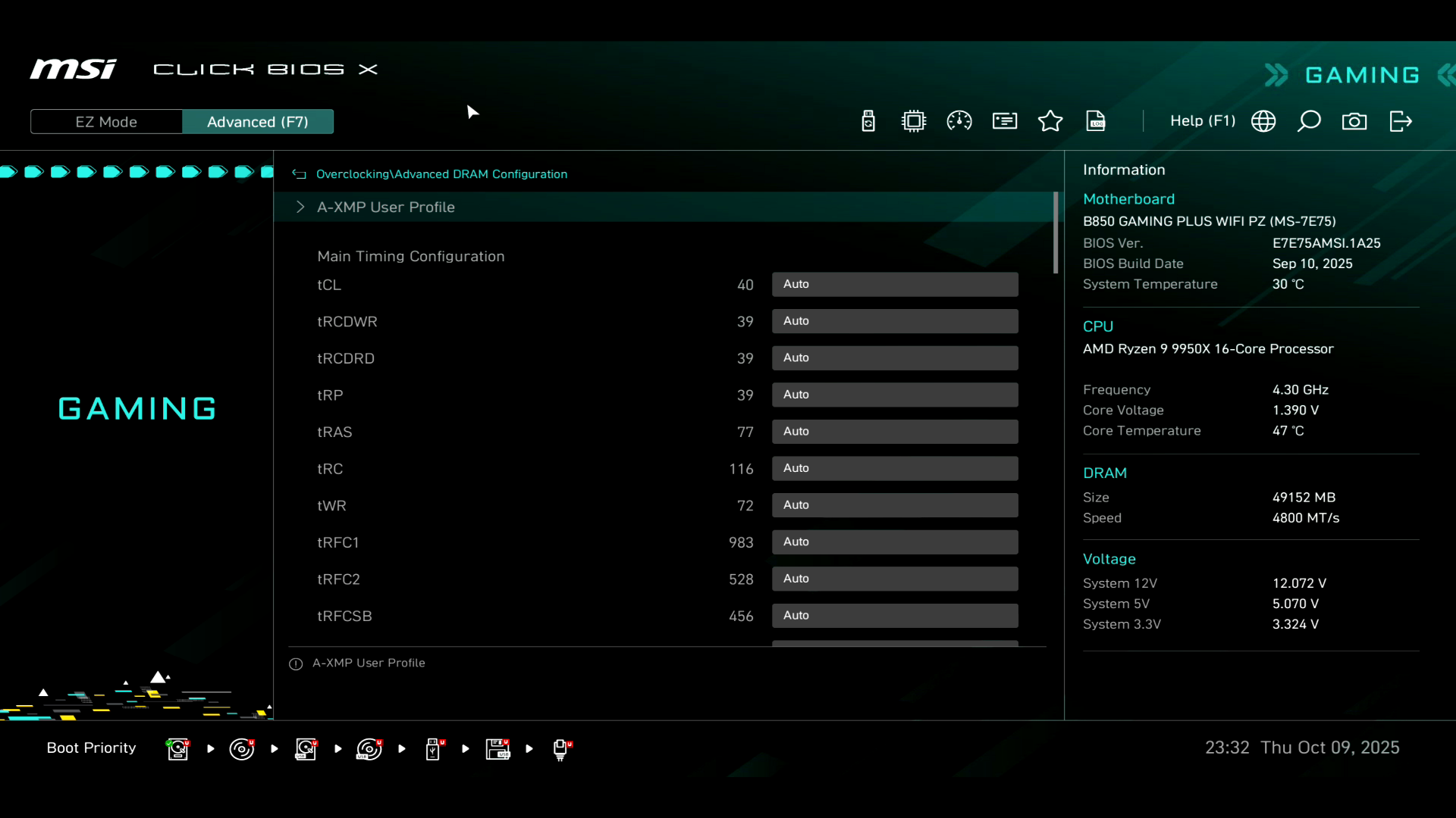 MSI B850 Gaming Plus WiFi Project Zero управляется MSI Click BIOS X. Настройка происходит в режимах EZ Mode и Advanced Mode.