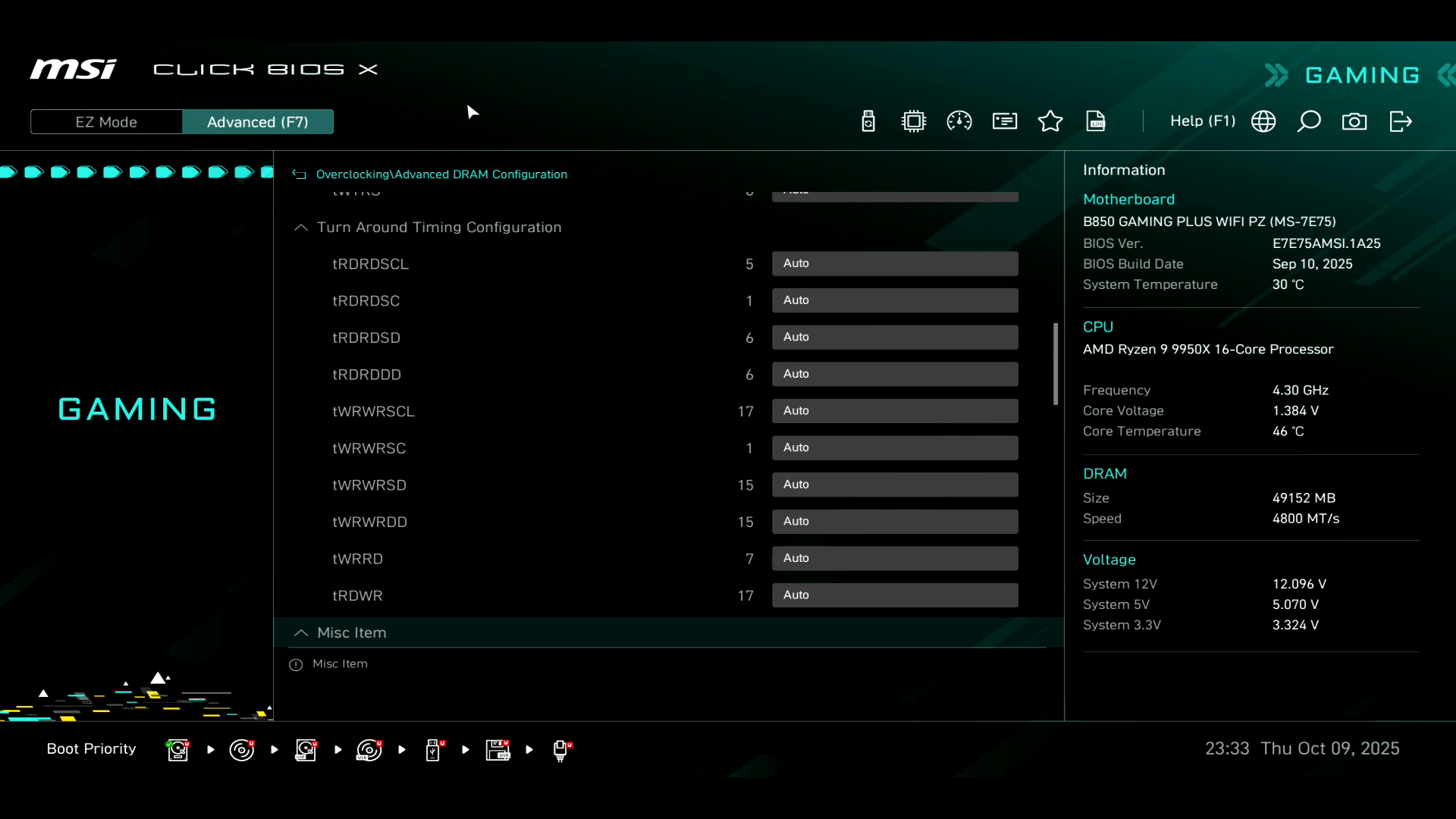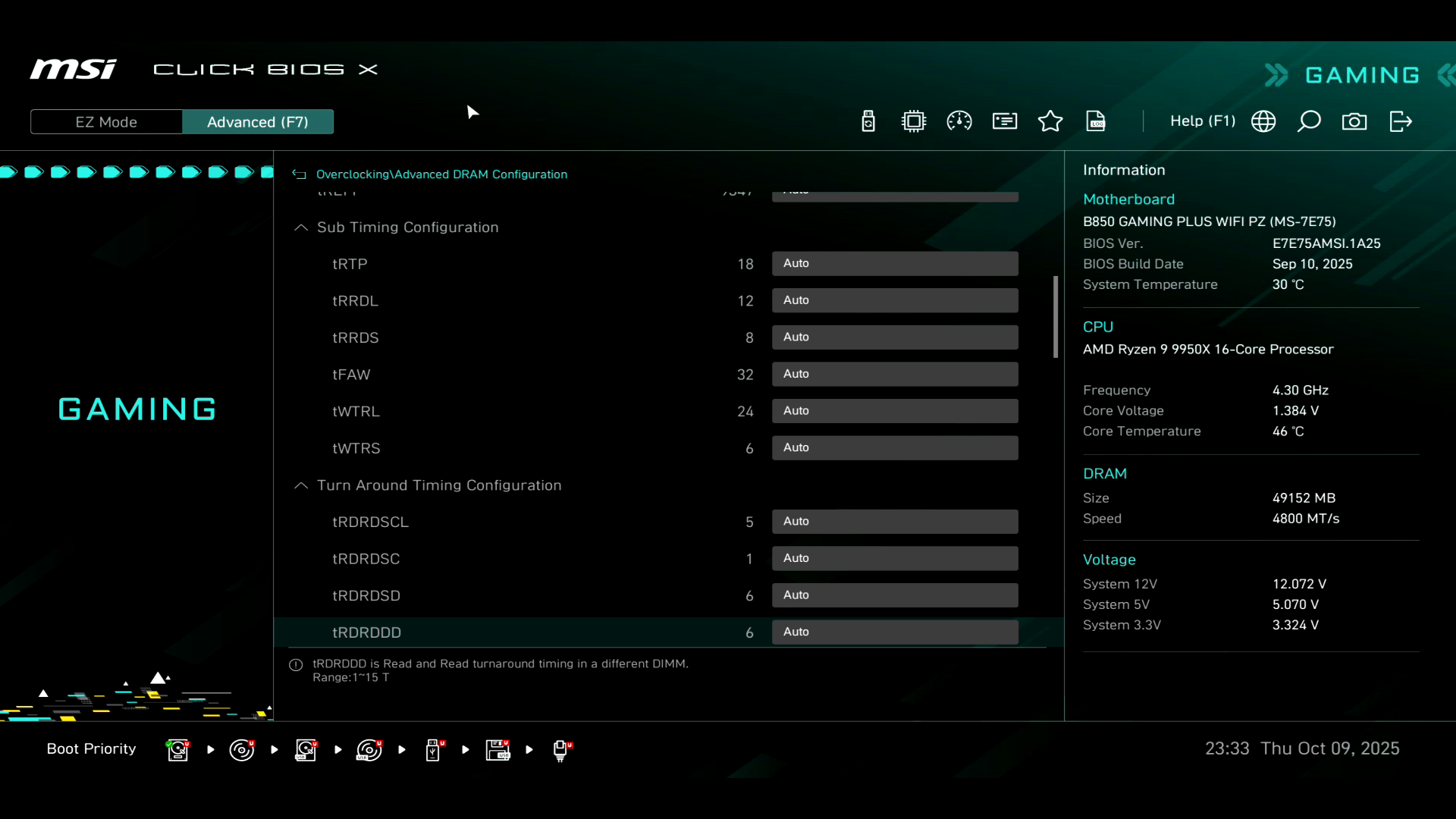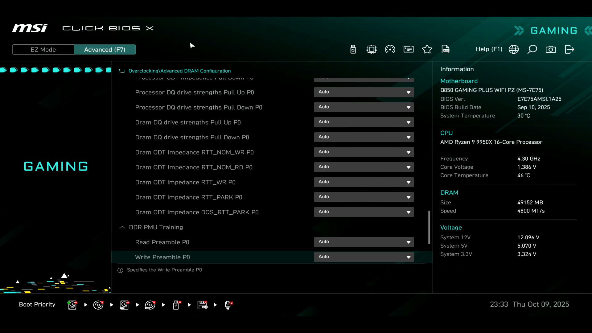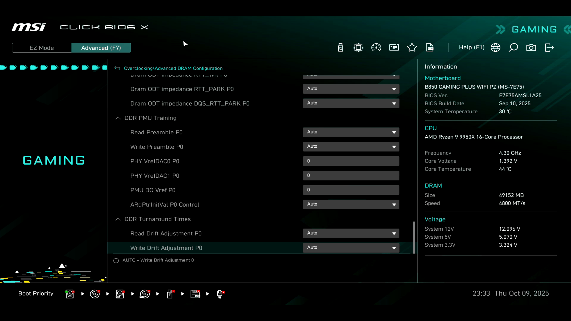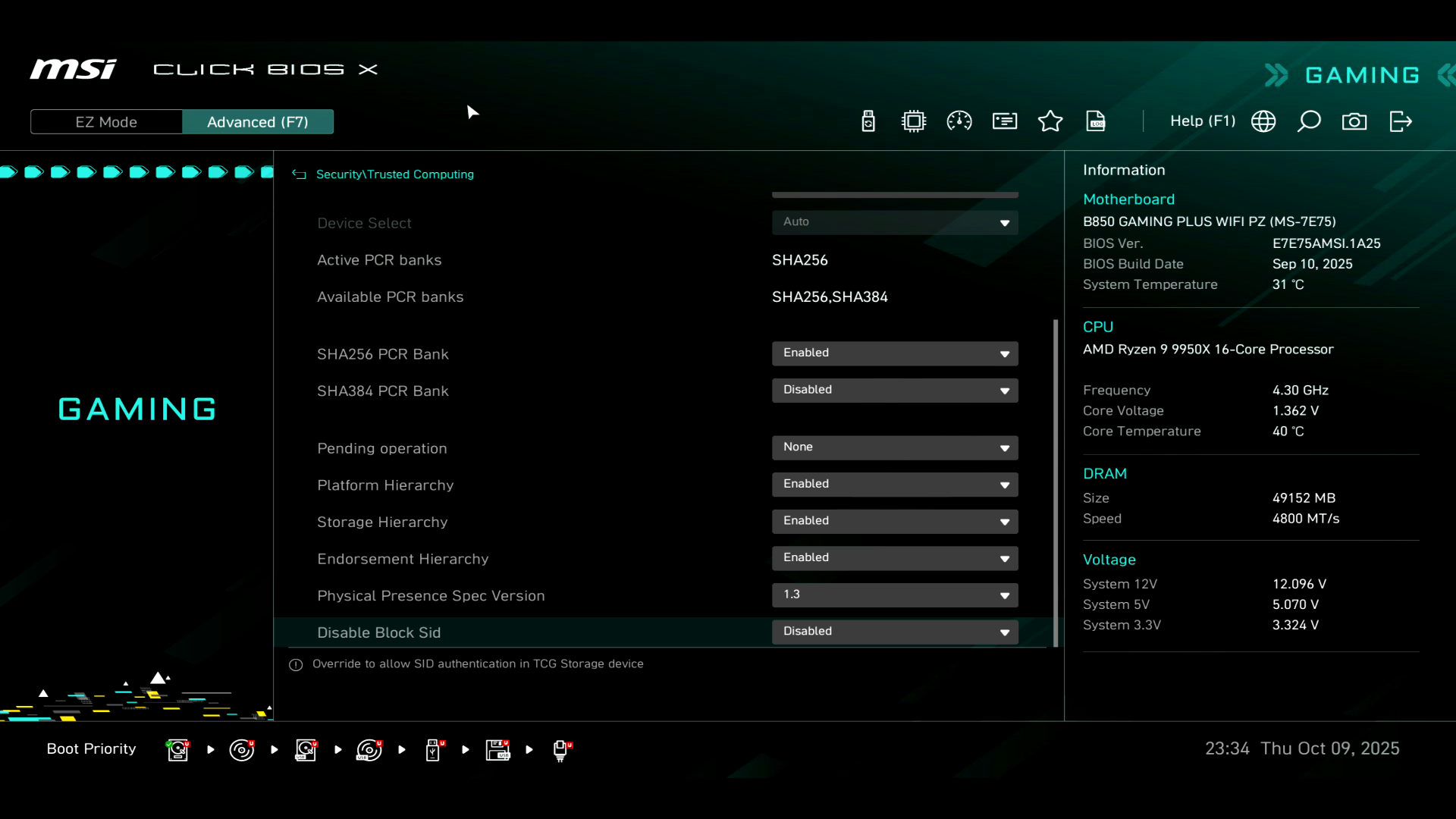 MSI B850 Gaming Plus WiFi Project Zero управляется MSI Click BIOS X. Настройка происходит в режимах EZ Mode и Advanced Mode.