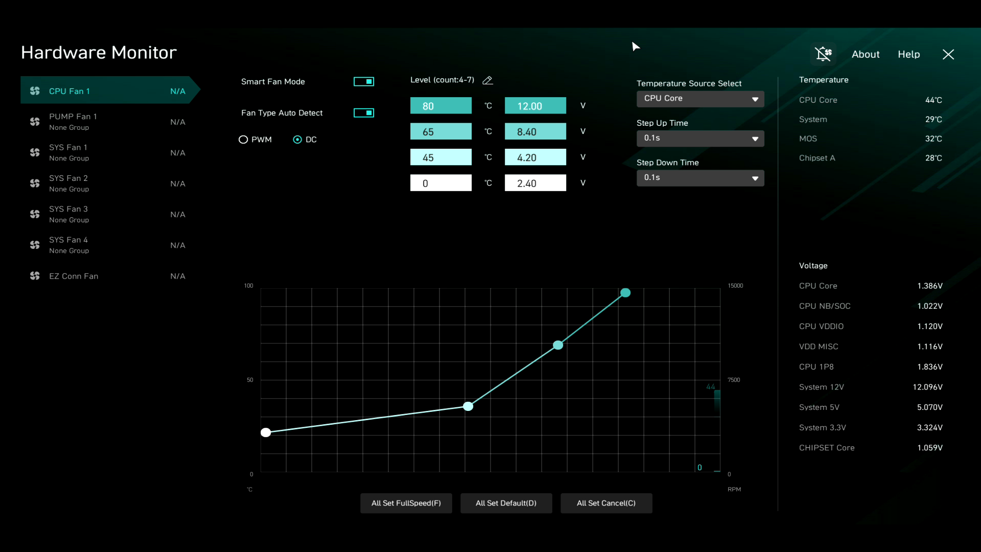| Chipset Core Voltage (V) | 0,85–1,5 | 0,01 |