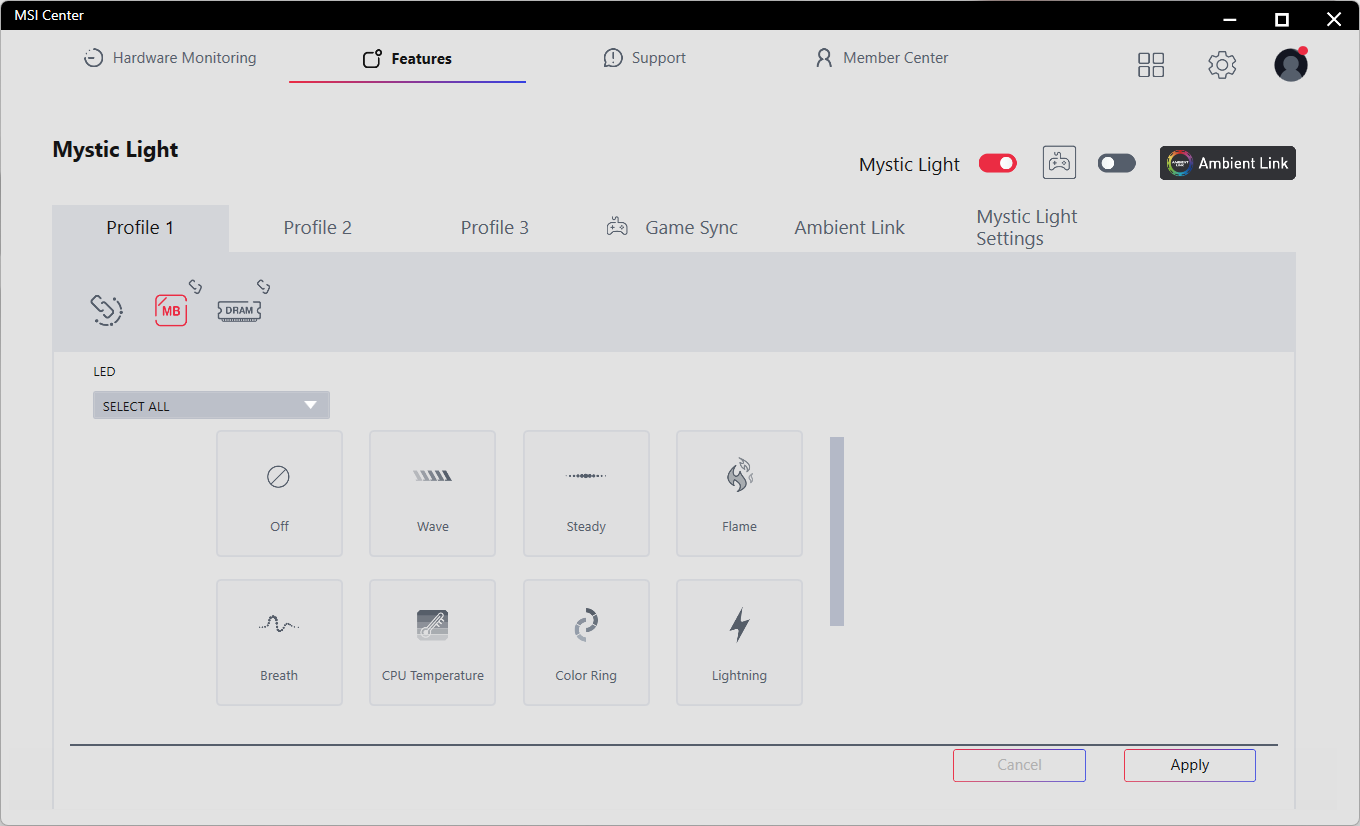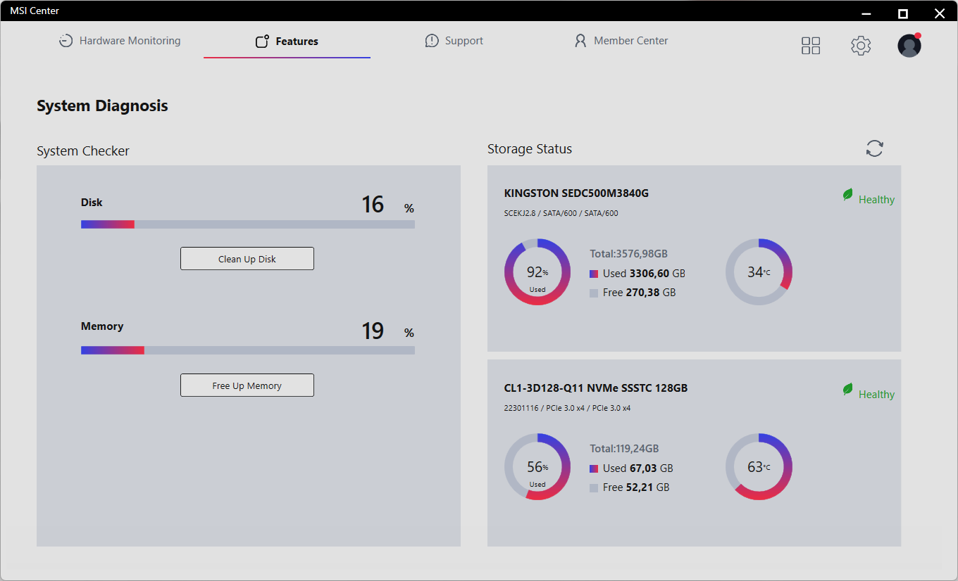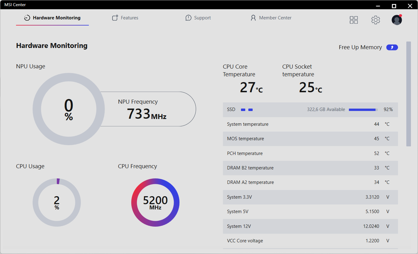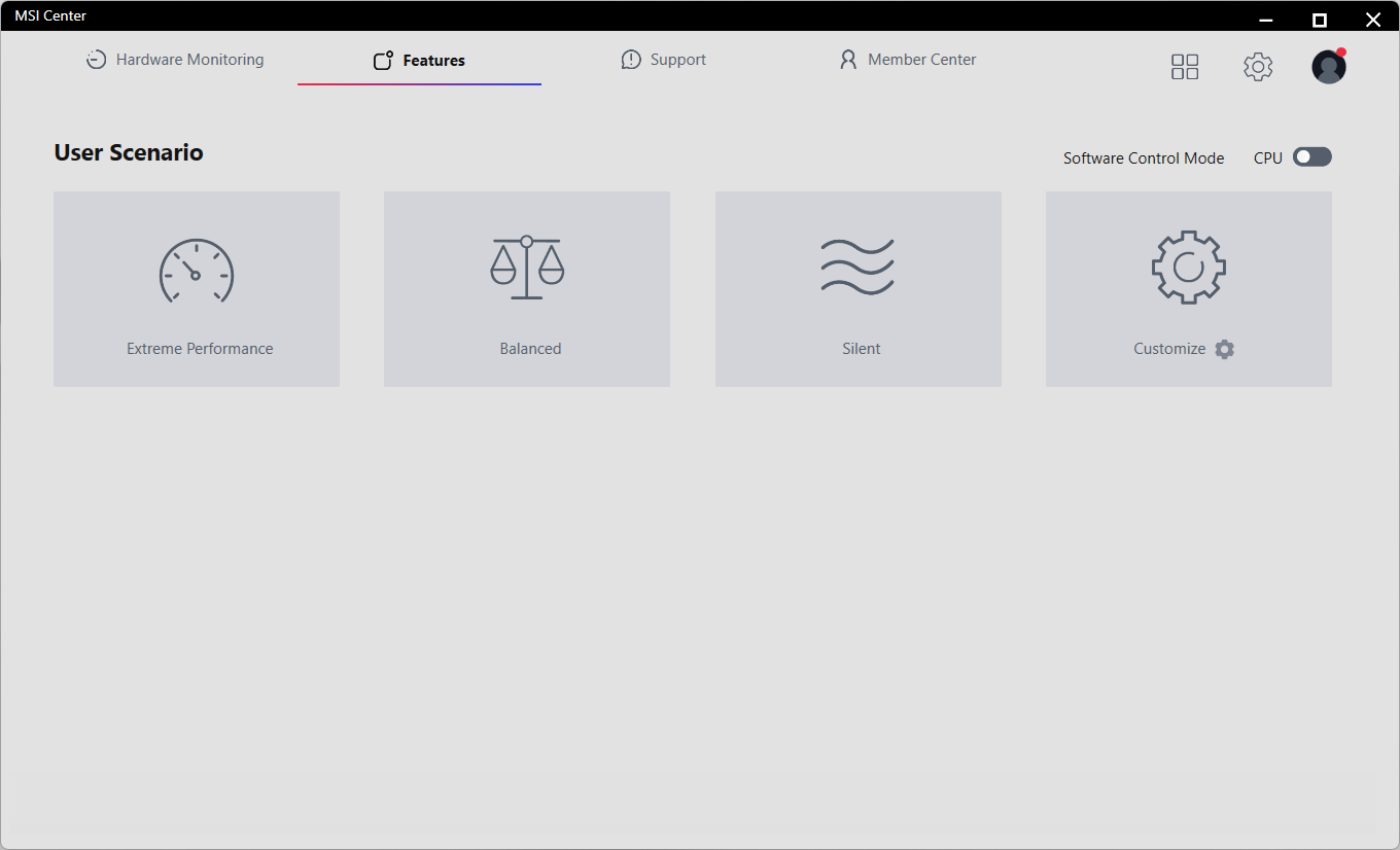 Главное ядро фирменного ПО производителя — MSI Center. Это модульное приложение, которое пользователь самостоятельно настраивает под свои задачи. Оно может быть простым средством мониторинга системы и материнской платы, но при необходимости — превратится в функциональный программный комплекс с богатыми возможностями.
