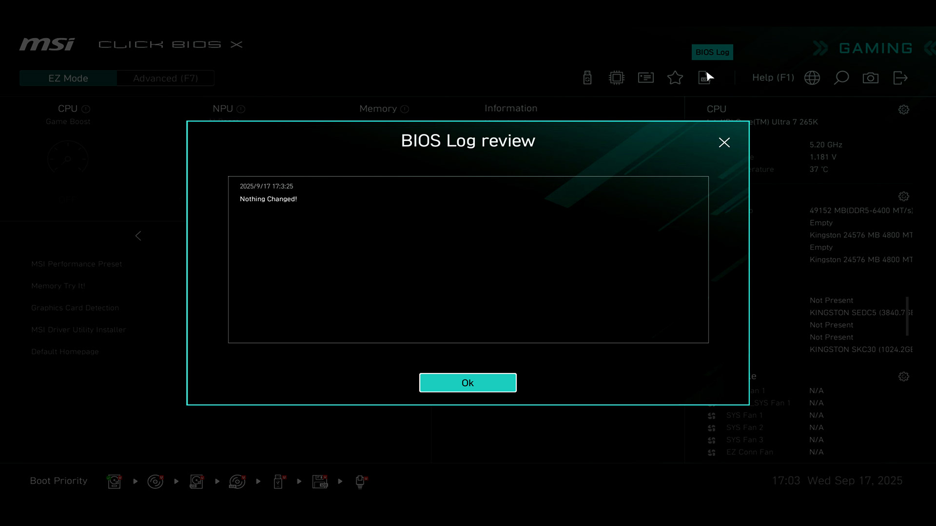 EZ Mode предоставляет отчет по интерфейсам, слотам, портам и так далее. Можно в один клик разогнать NPU в различных режимах, задействовать XMP-профиль оперативной памяти в случае его присутствия. Отсюда также можно установить приоритет загрузки с накопителей или сети.
