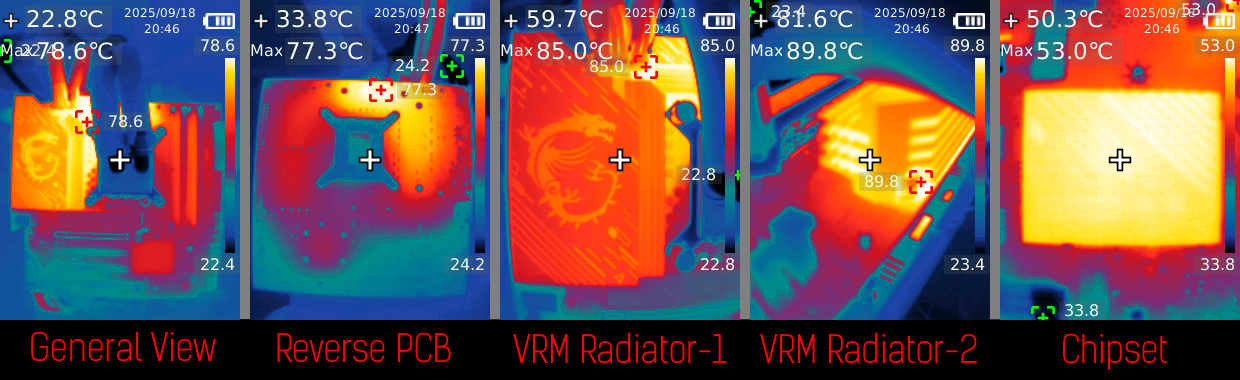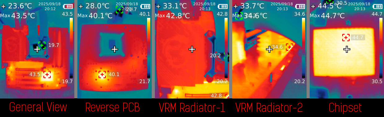 Температура в помещении удерживалась на уровне 25 градусов по Цельсию. Измерение энергопотребления процессора происходило через прямой замер EPS12V & ATX12V с помощью BENCHLAB (опрос датчика каждые 100 мс), то же самое актуально для материнской платы и замера ATX 24-pin. Измерение температуры фиксировалось по программным датчикам HWINFO, а также по термофото, которое было выполнено тепловой камерой UNI‑T RX-600. Тест представлял собой забег 30 минут LinX 0.7.0 (problem size 46290). Каждый бенчмарк запускался пять раз, в результатах указано среднее арифметическое. Игры тестировались на заводских пресетах минимального качества в стандартных бенчмарках. Counter-Strike 2 тестировался на карте мастерской CS2 FPS BENCHMARK.