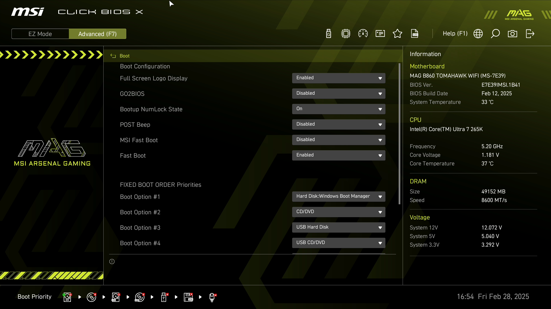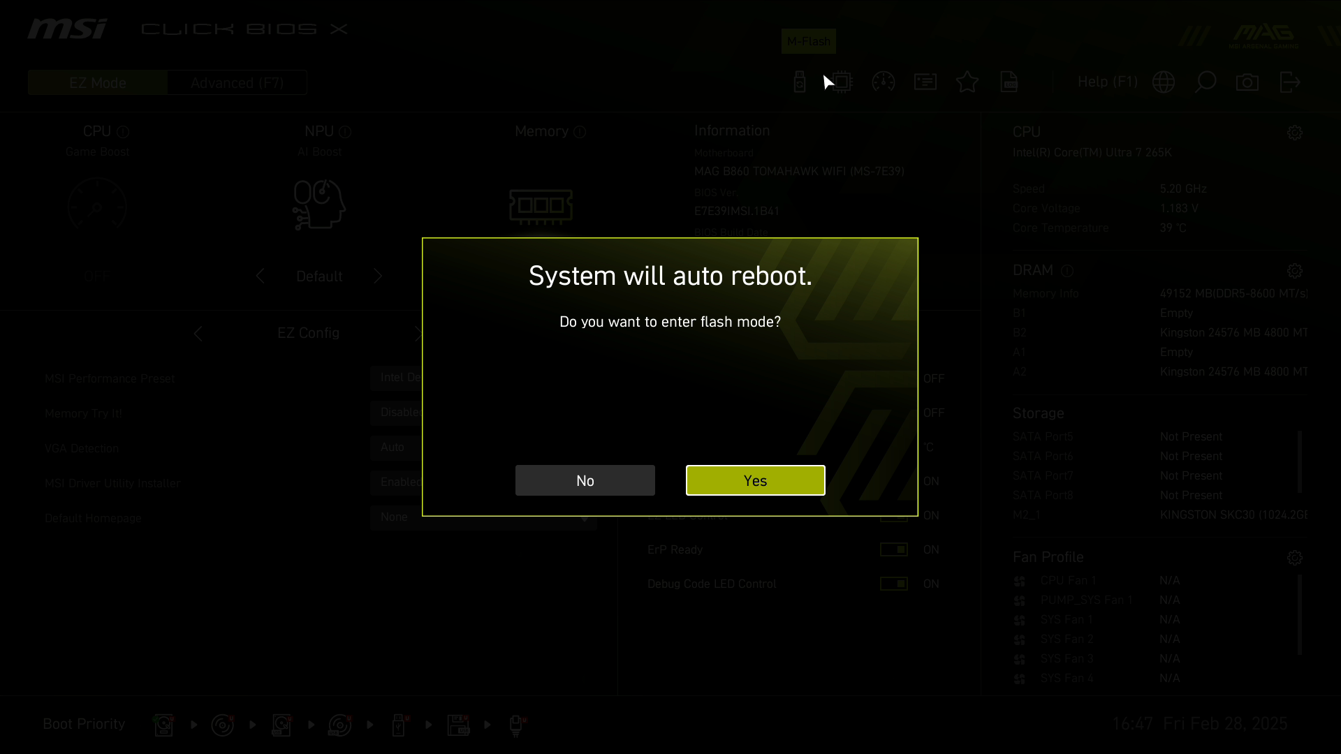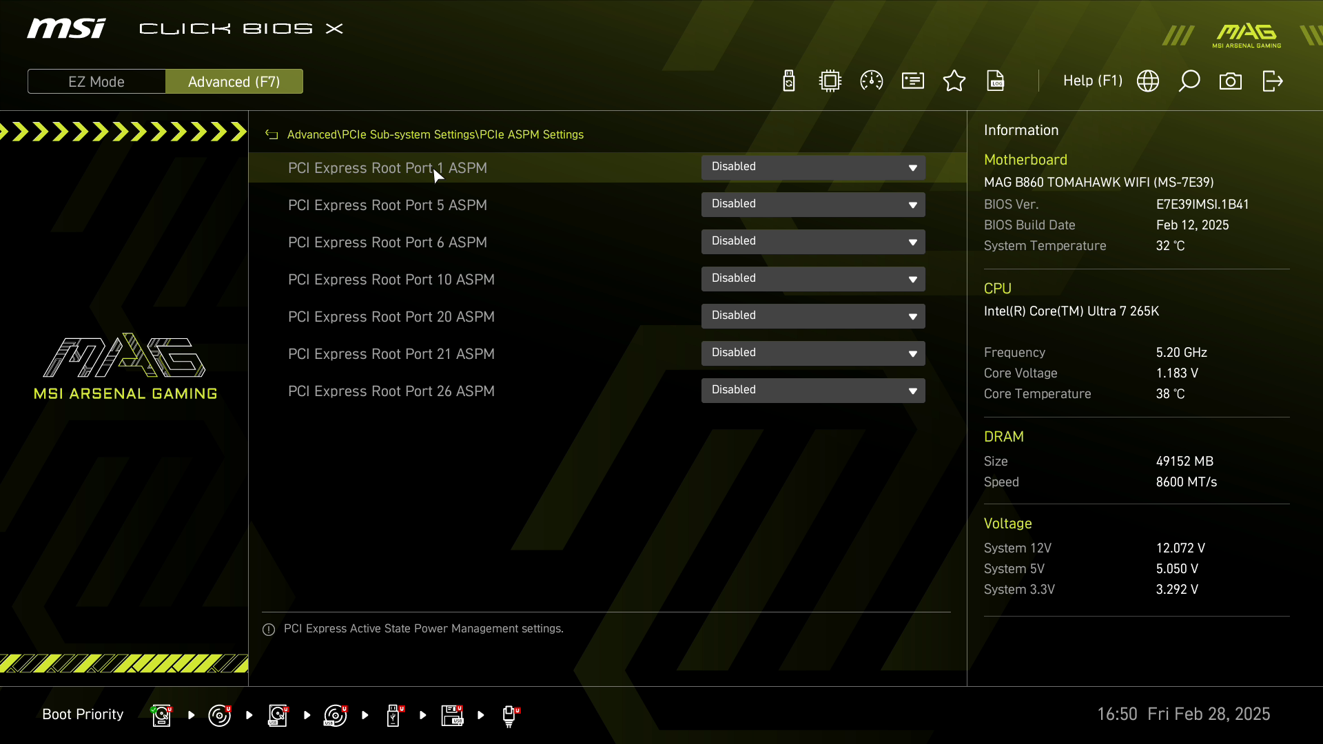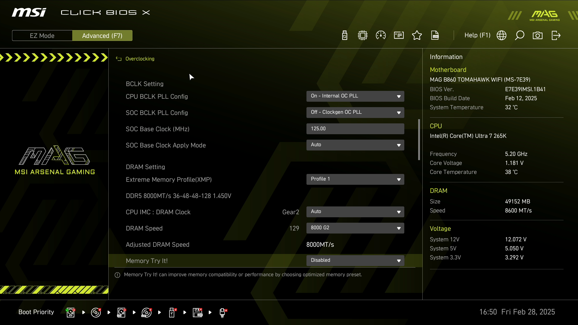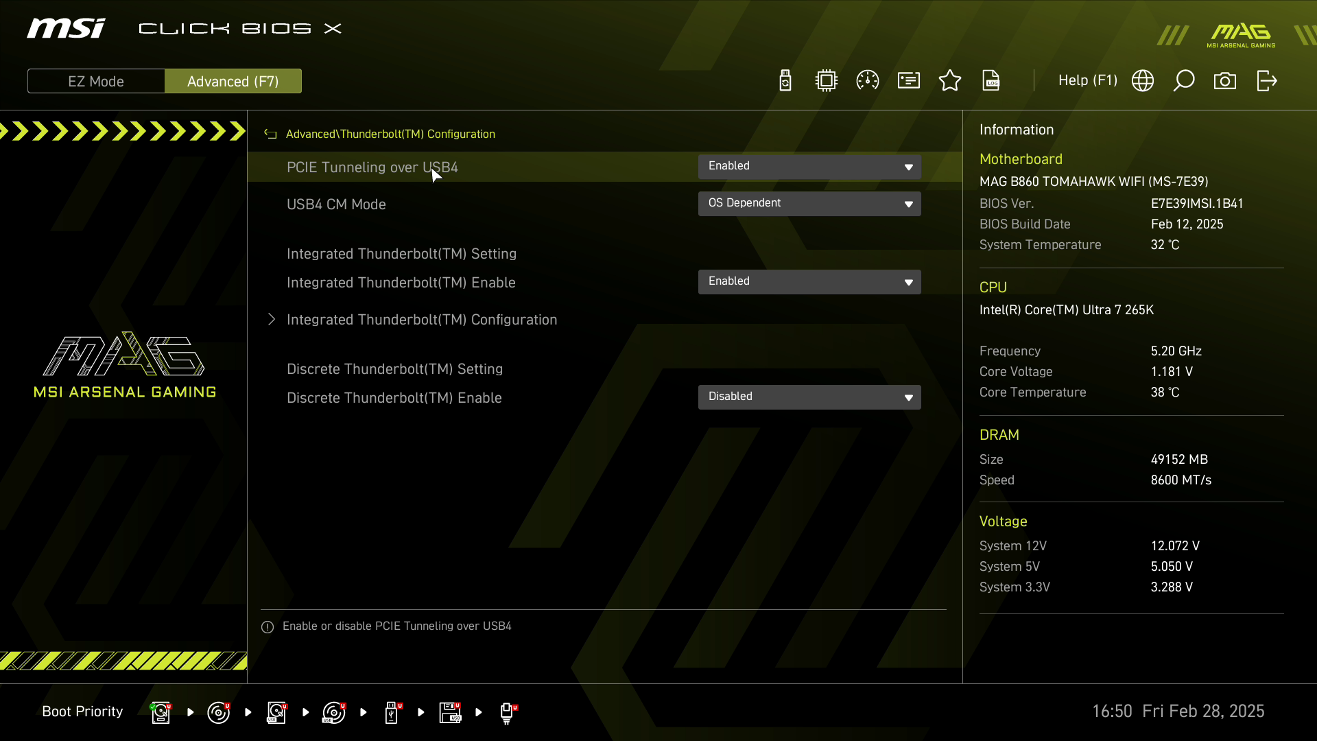 MAG B860 TOMAHAWK WIFI управляется через интерфейс MSI Click BIOS X, который оперируется в режимах EZ Mode и Advanced Mode.