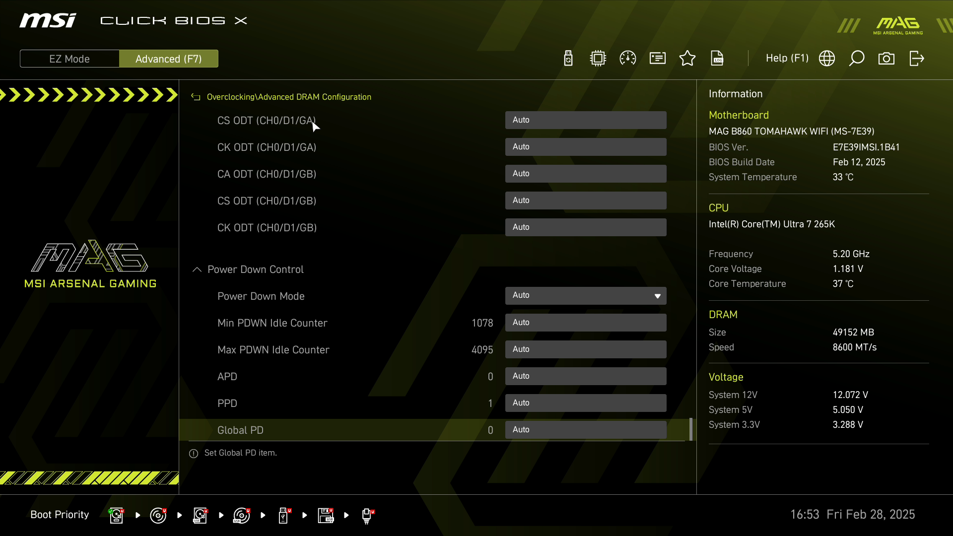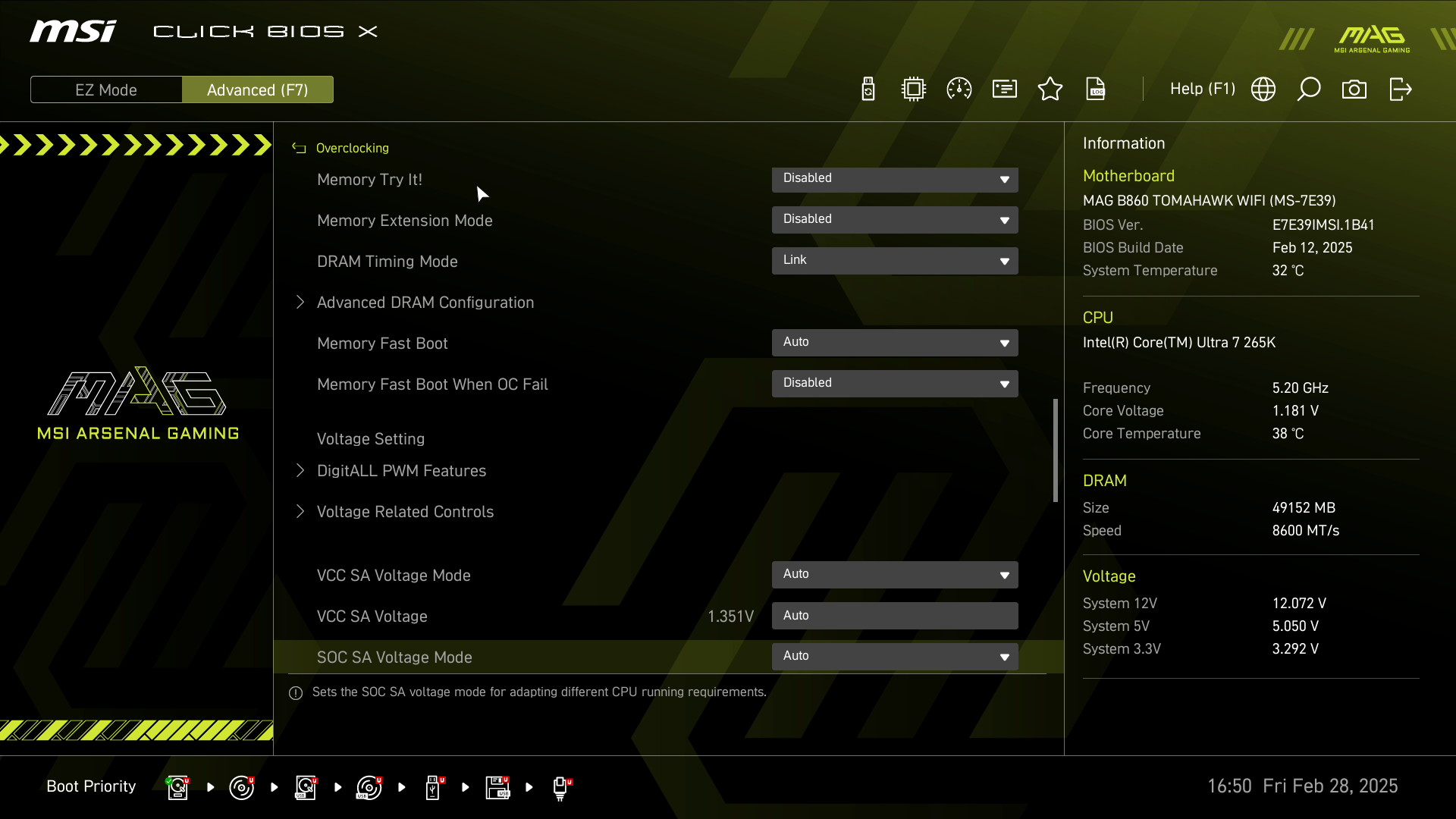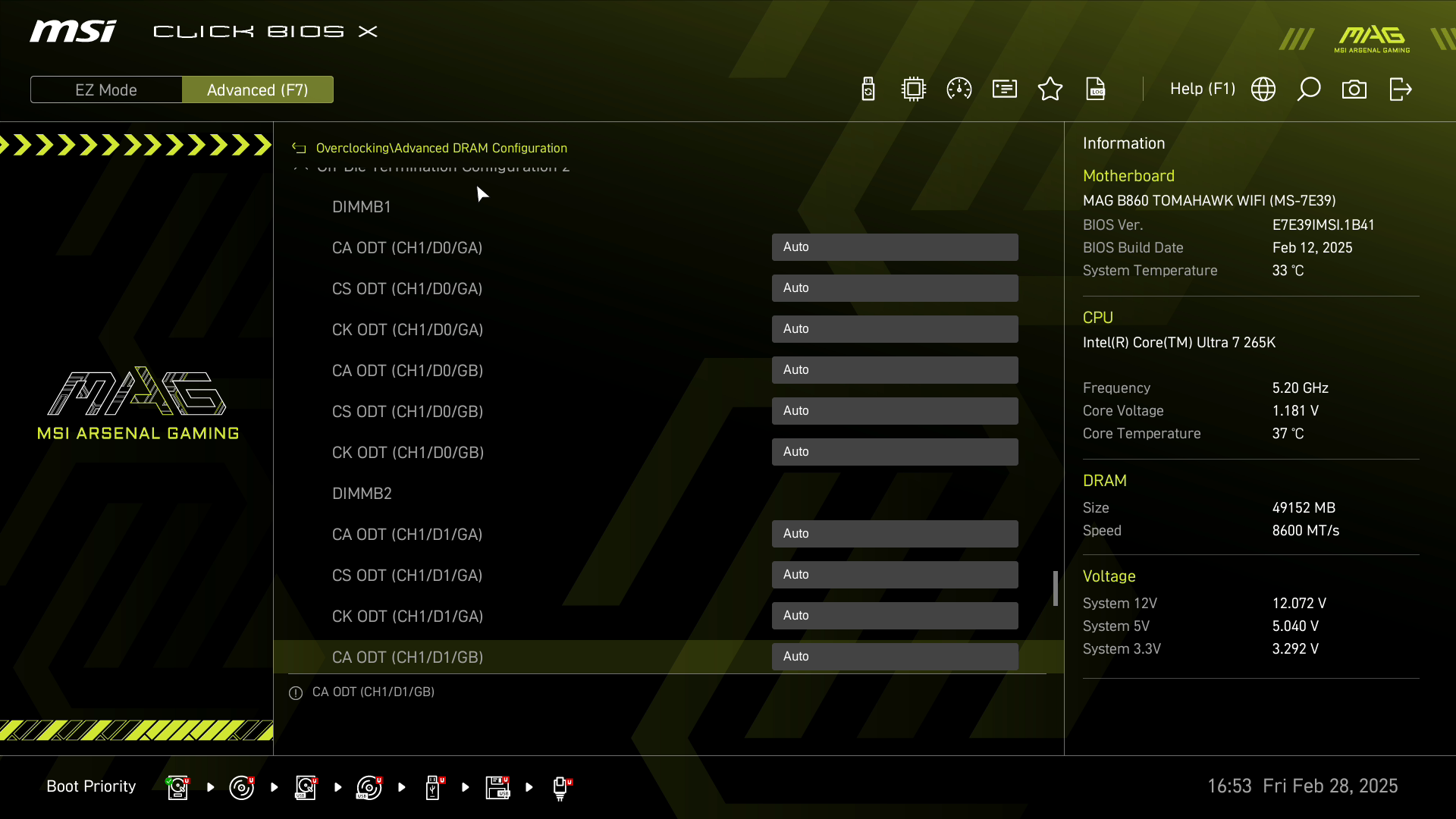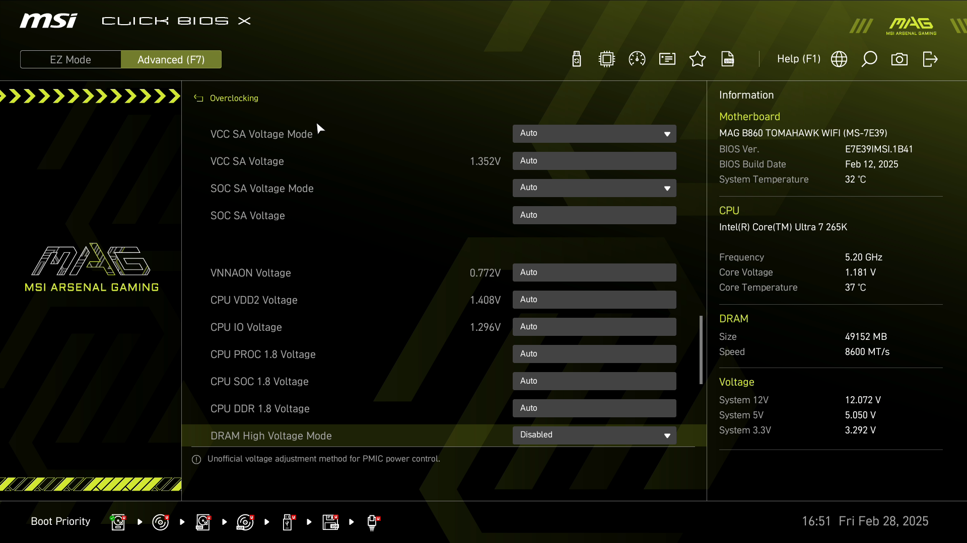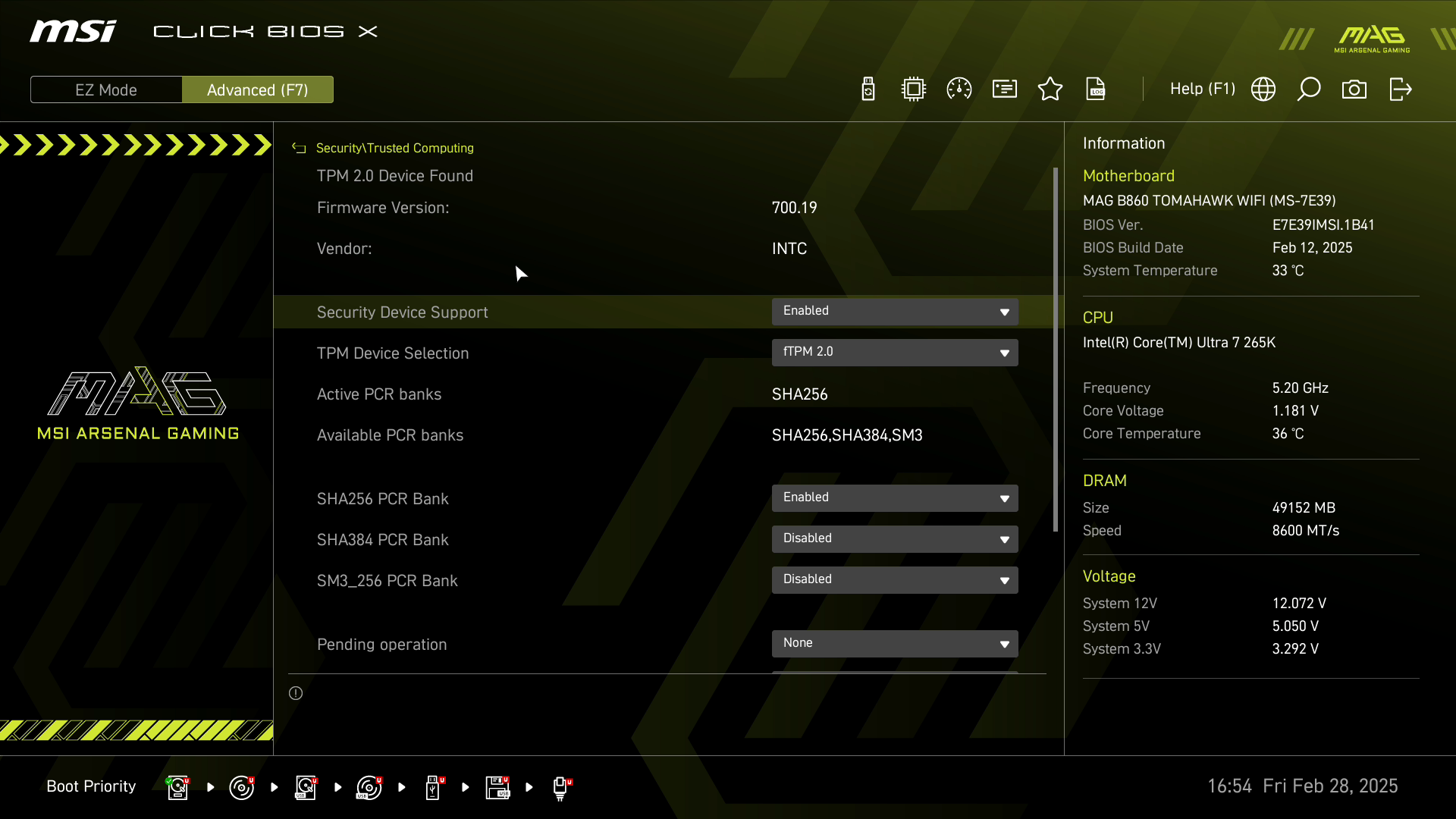 MAG B860 TOMAHAWK WIFI управляется через интерфейс MSI Click BIOS X, который оперируется в режимах EZ Mode и Advanced Mode.