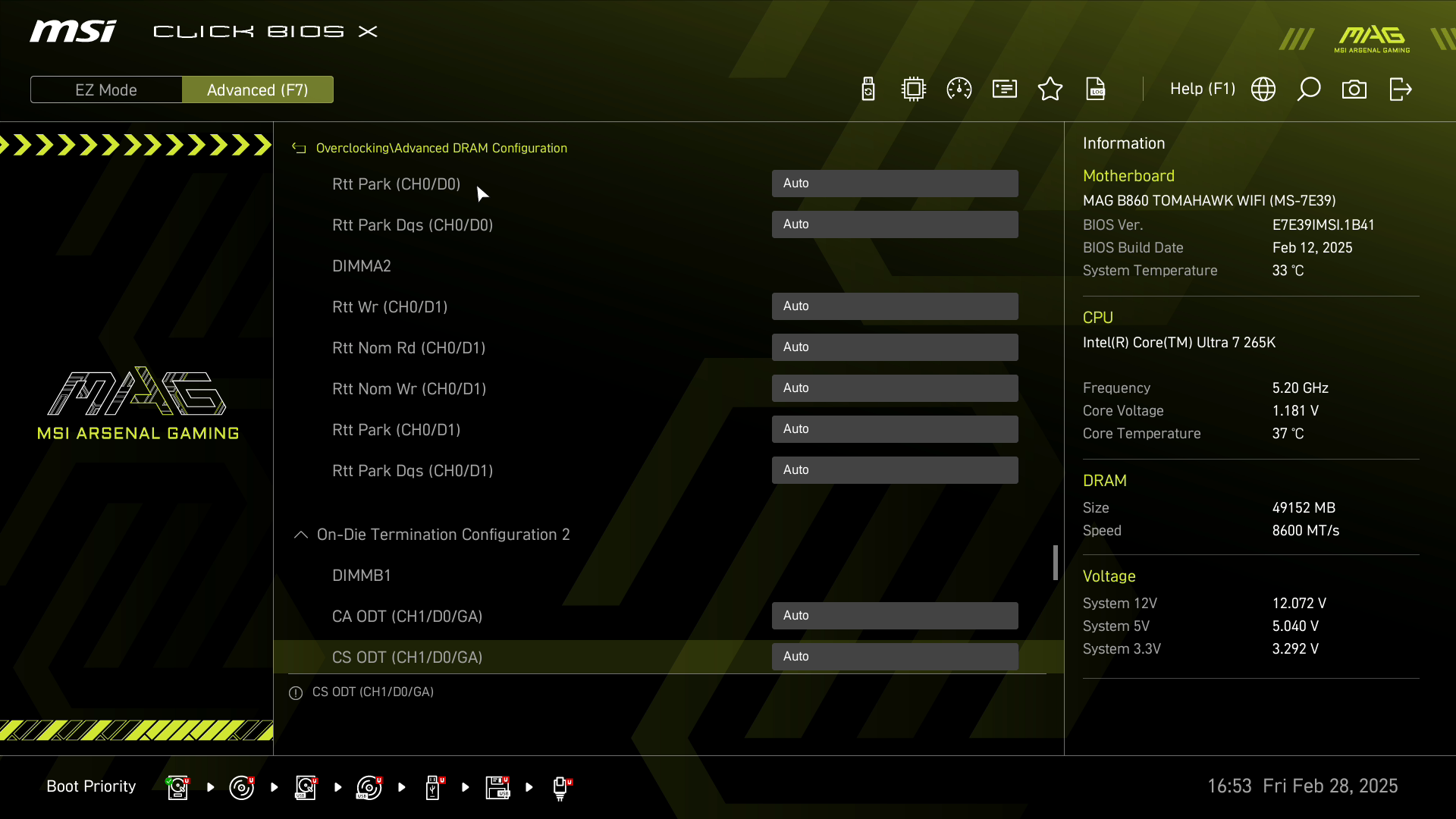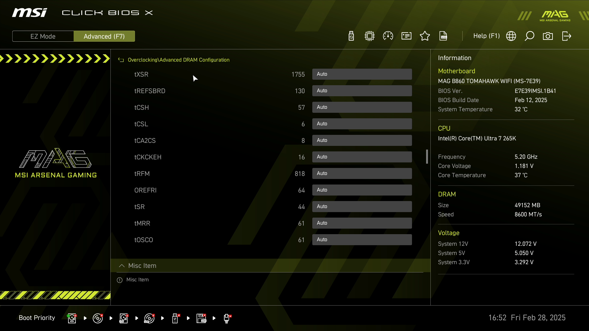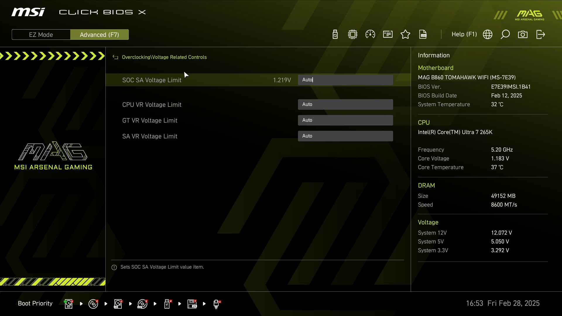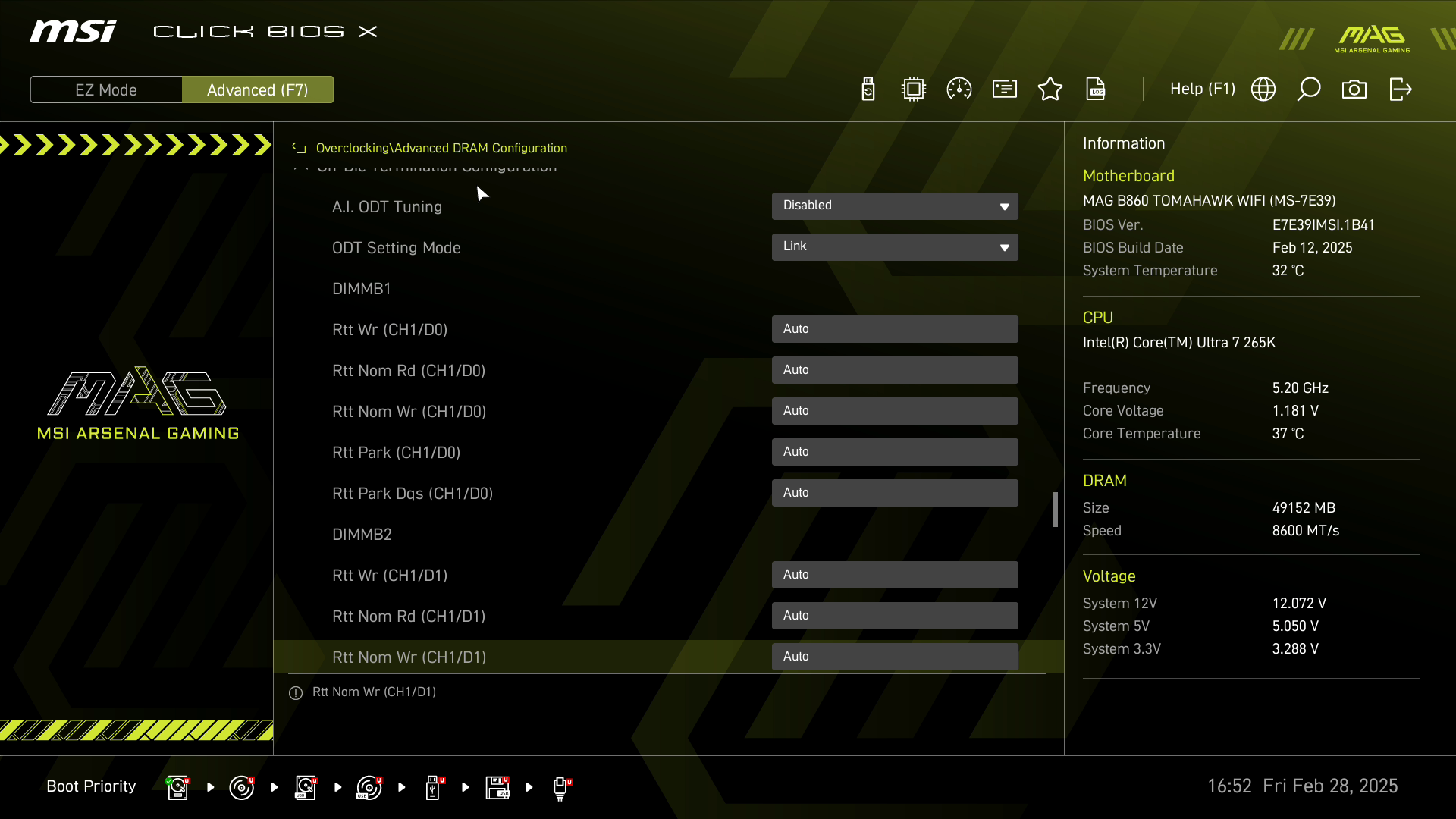 MAG B860 TOMAHAWK WIFI управляется через интерфейс MSI Click BIOS X, который оперируется в режимах EZ Mode и Advanced Mode.
