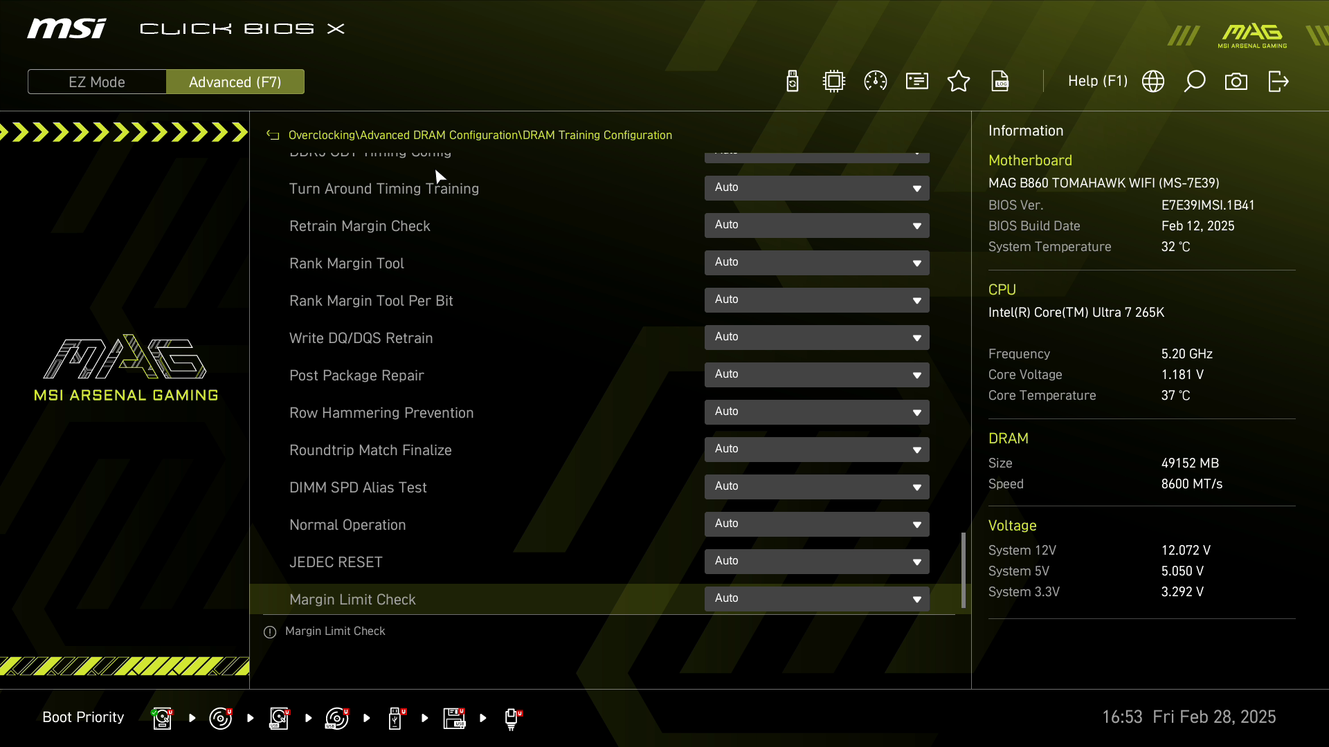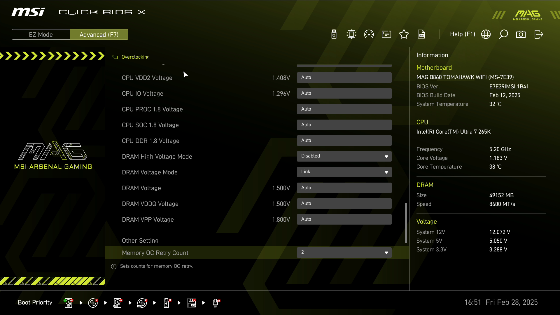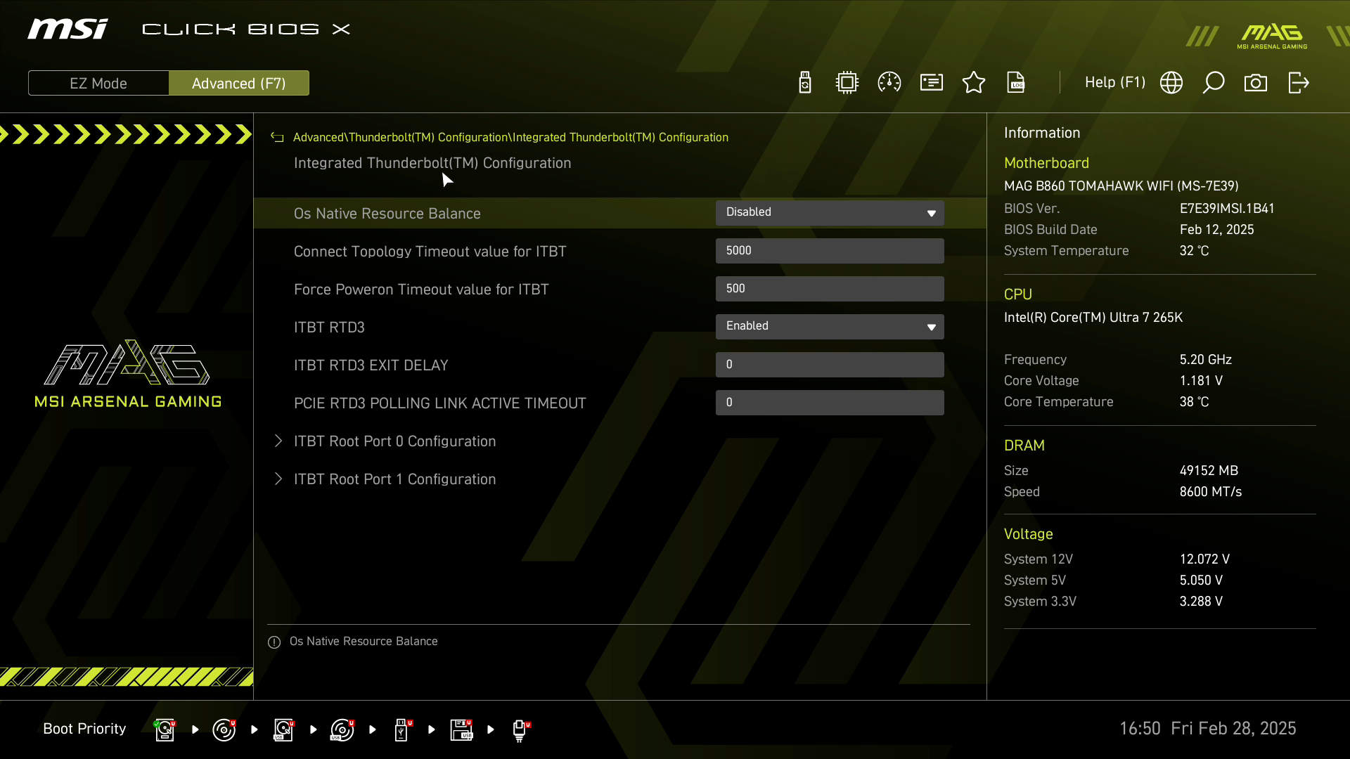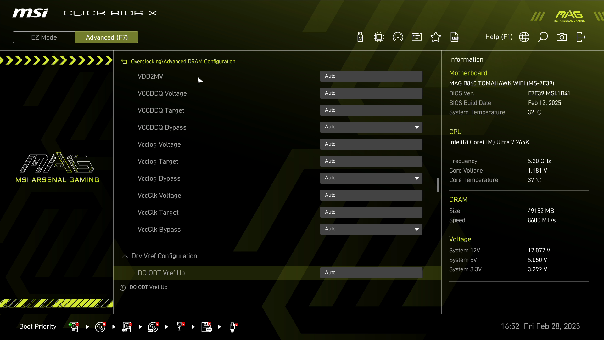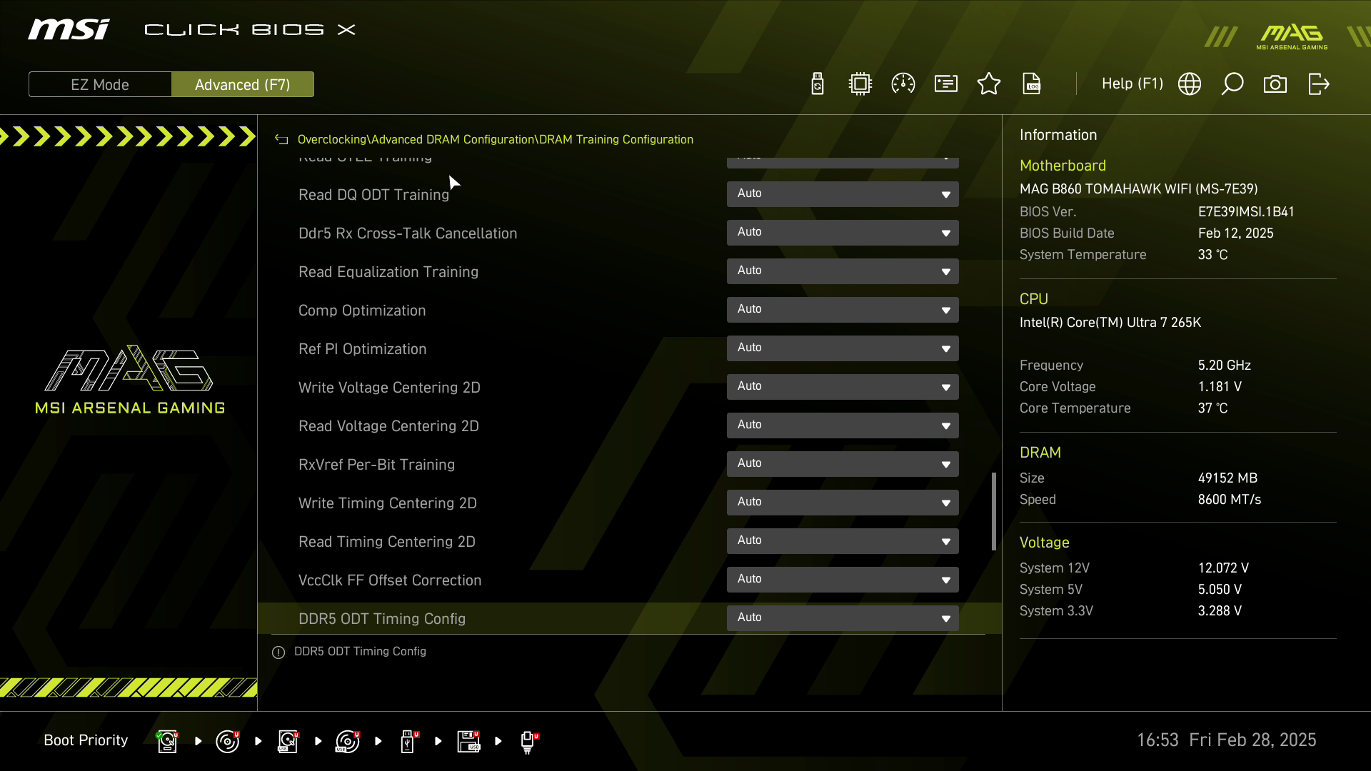 MAG B860 TOMAHAWK WIFI управляется через интерфейс MSI Click BIOS X, который оперируется в режимах EZ Mode и Advanced Mode.