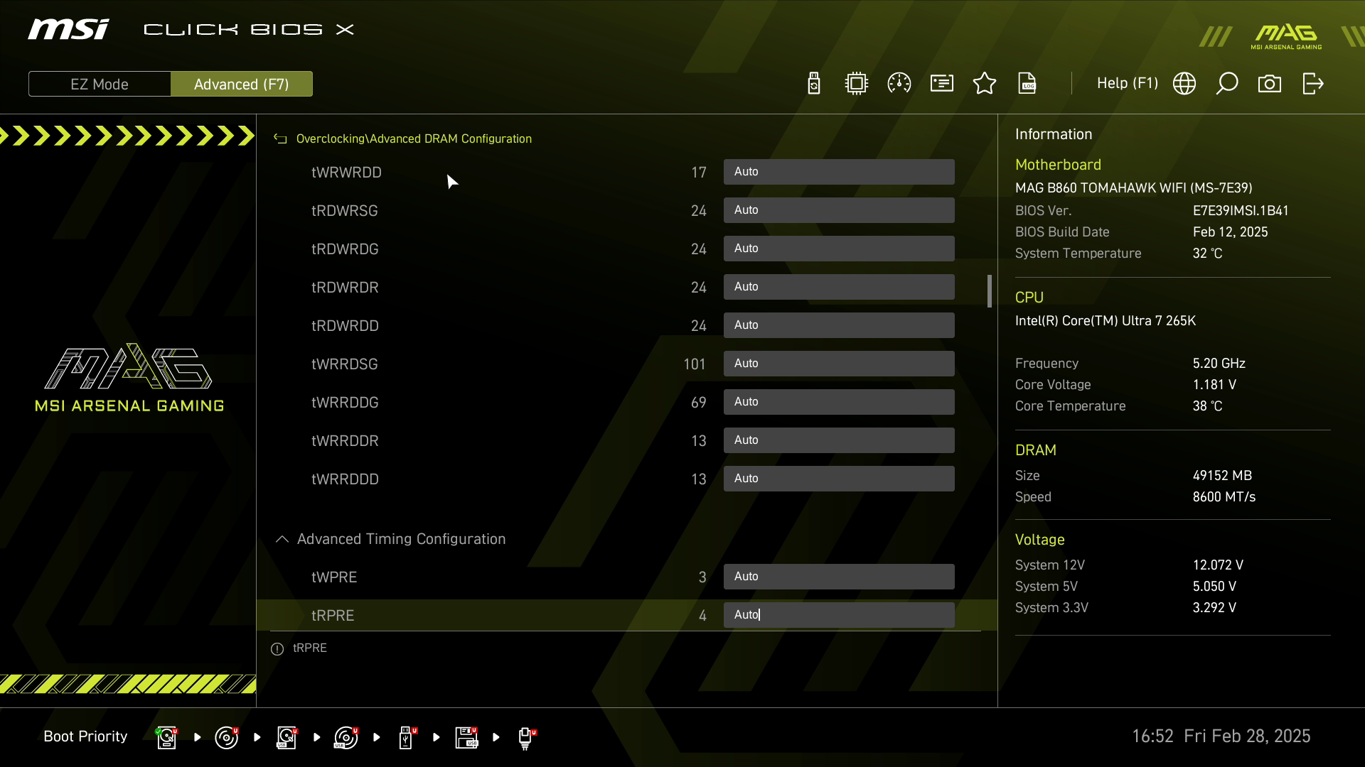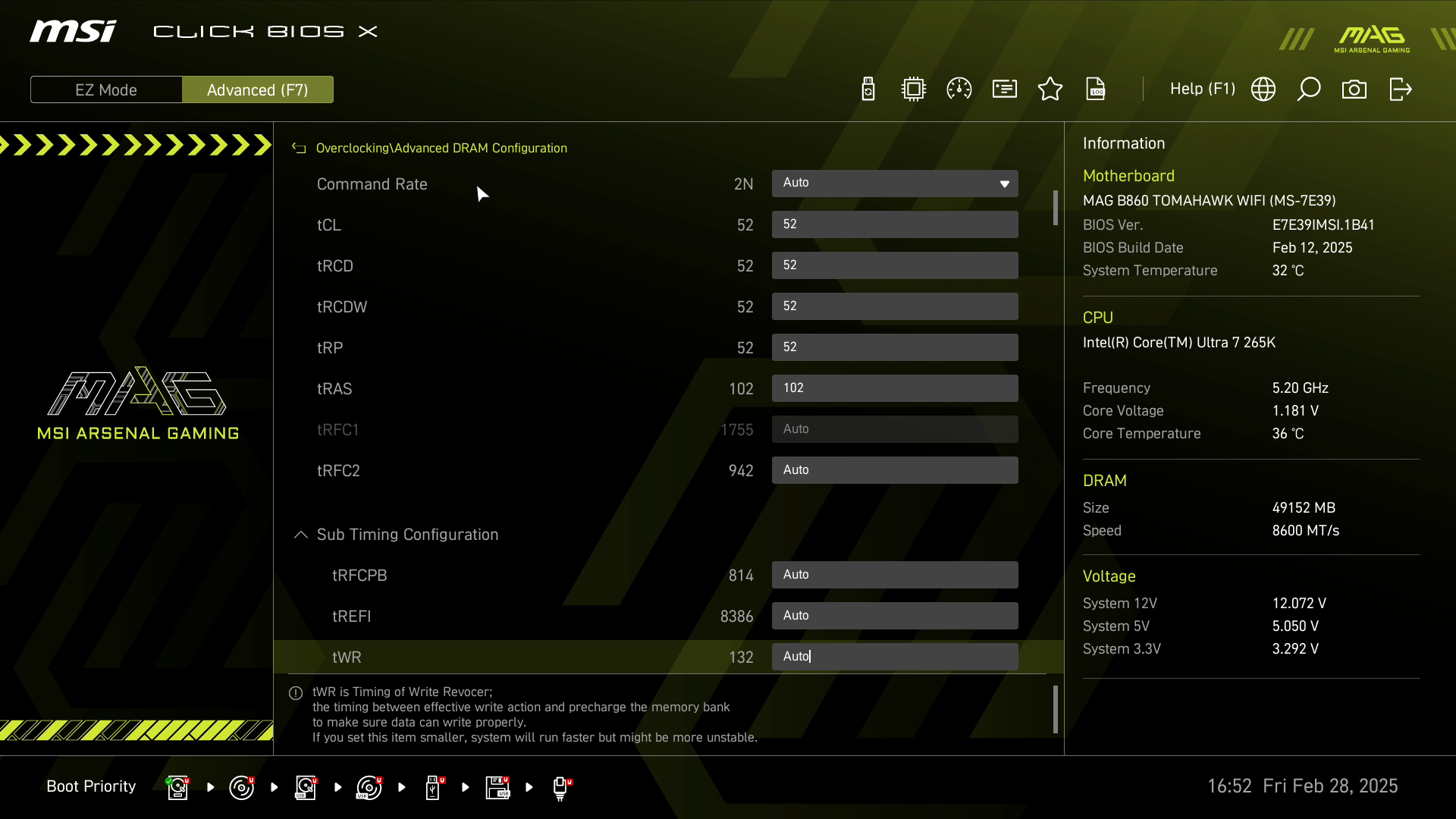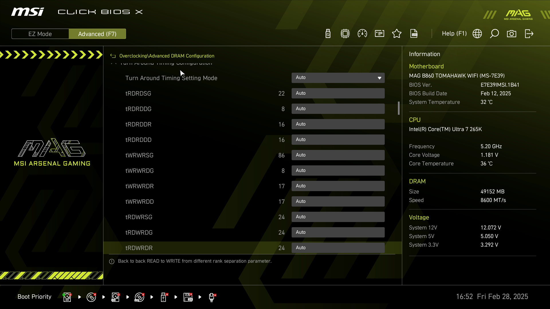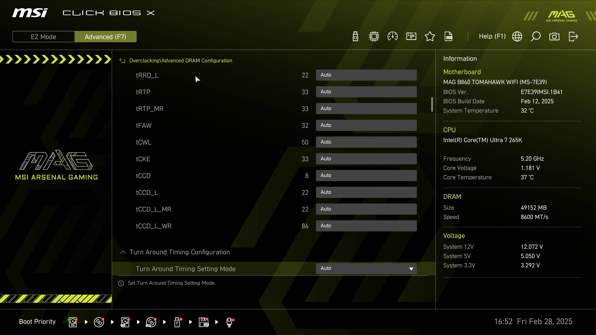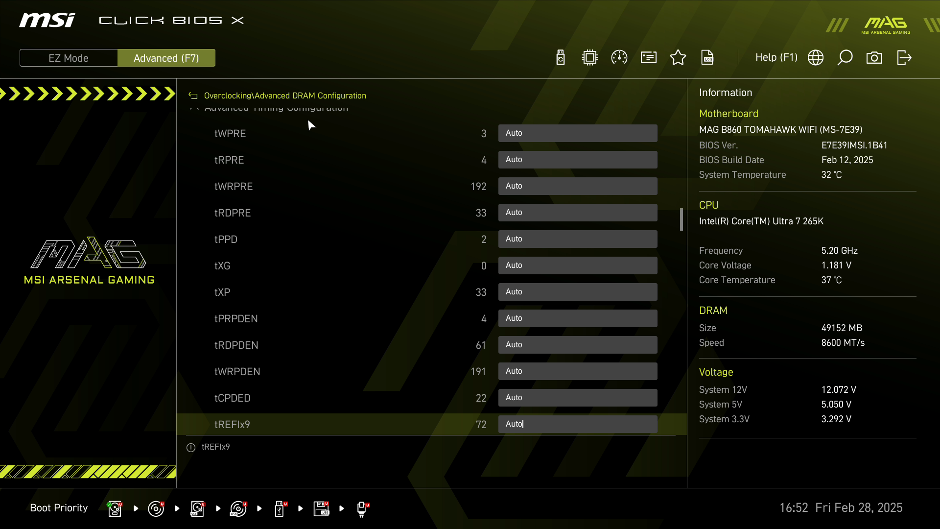 MAG B860 TOMAHAWK WIFI управляется через интерфейс MSI Click BIOS X, который оперируется в режимах EZ Mode и Advanced Mode.