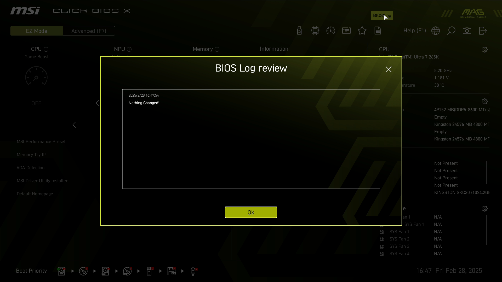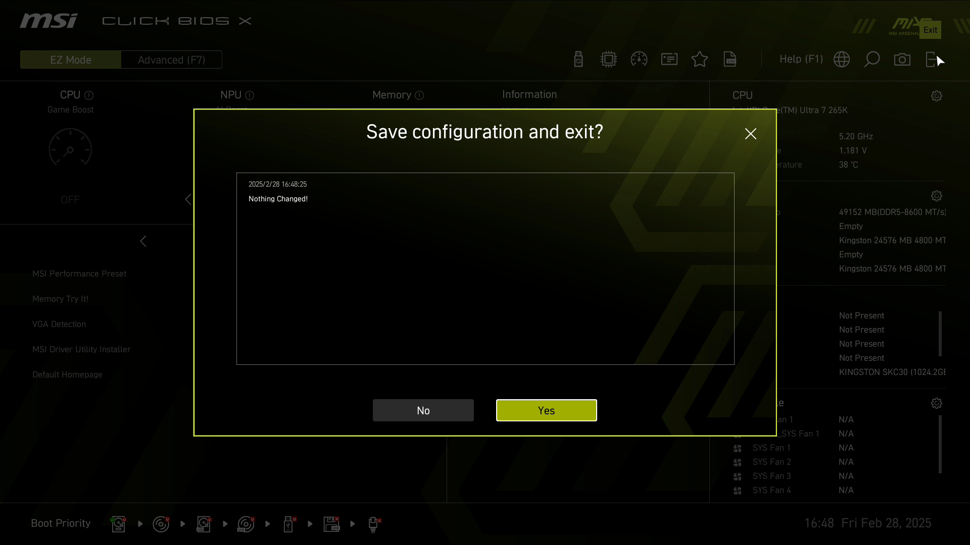 EZ Mode, судя по всему, мигрировал без изменений от старших моделей, на это намекает присутствие, но невозможность задействования Game Boost. В целом здесь можно получить отчёт по интерфейсам, слотам, портам и так далее. Можно в один клик разогнать NPU в различных режимах, задействовать XMP-профиль оперативной памяти в случае его присутствия. Отсюда также можно установить приоритет загрузки с накопителей или сети.