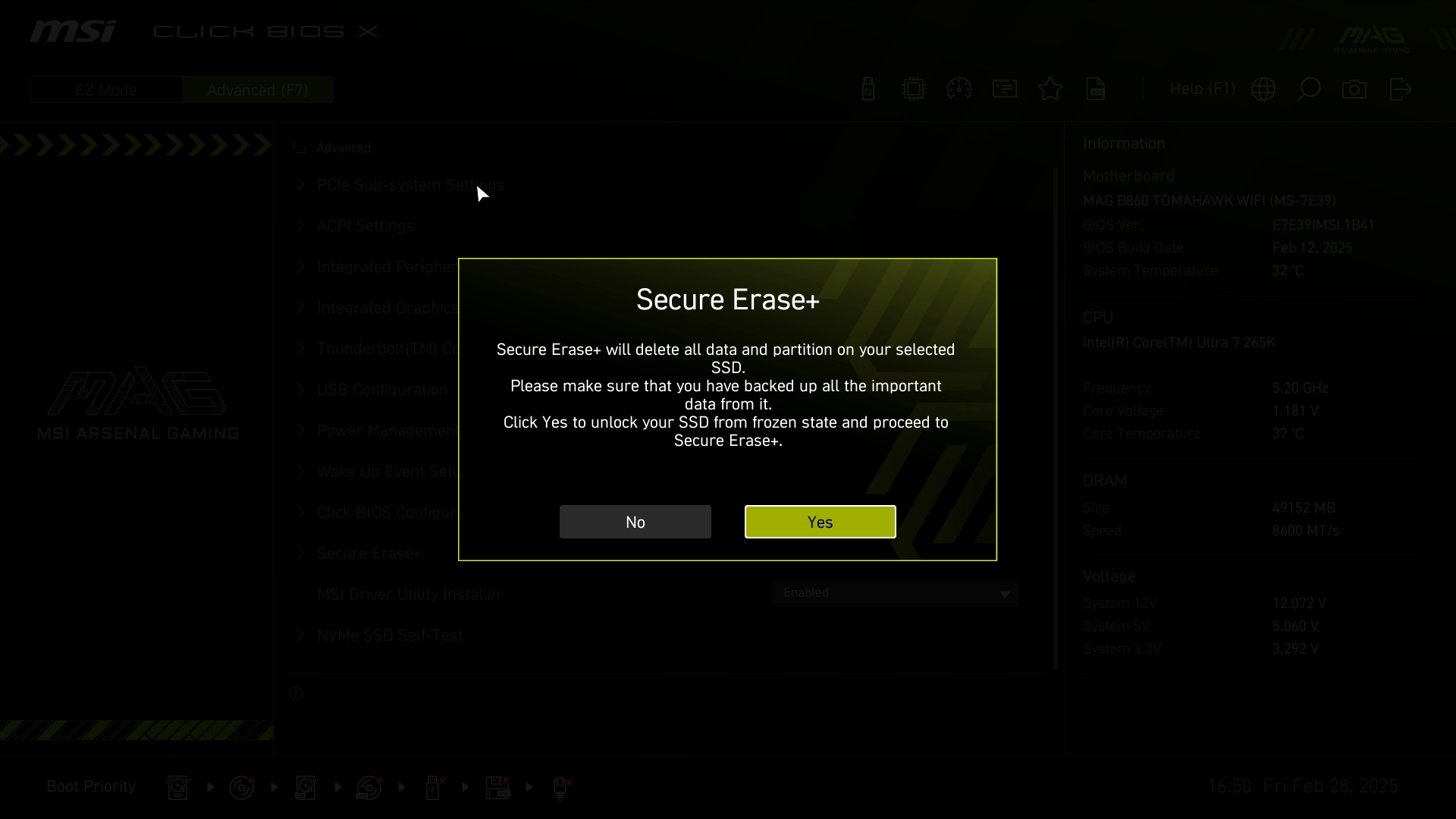 Секция Advanced отвечает за управление всеми присутствующими бортовыми устройствами и элементами материнской платы. Также здесь присутствует функция Secure Erase.
