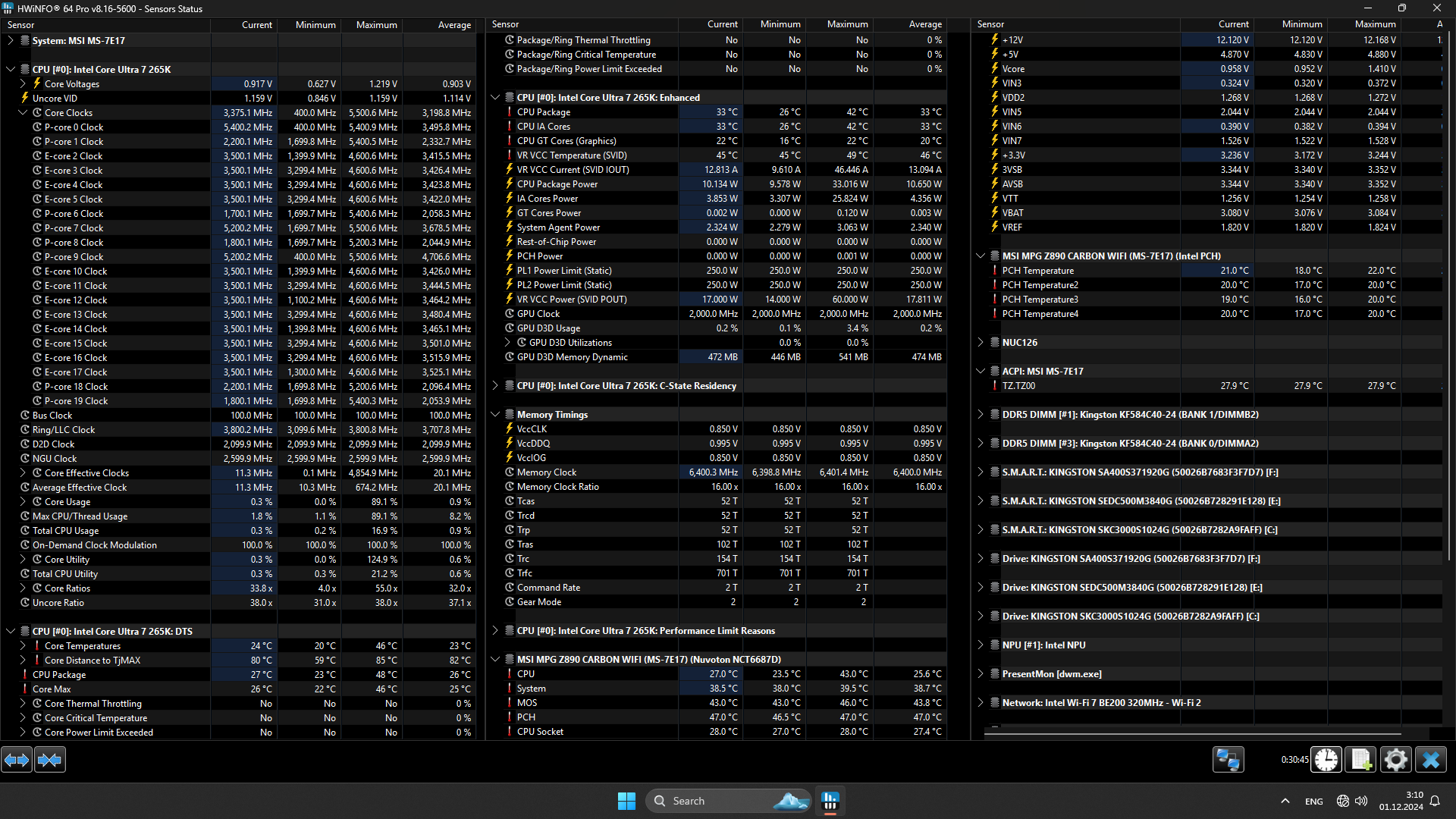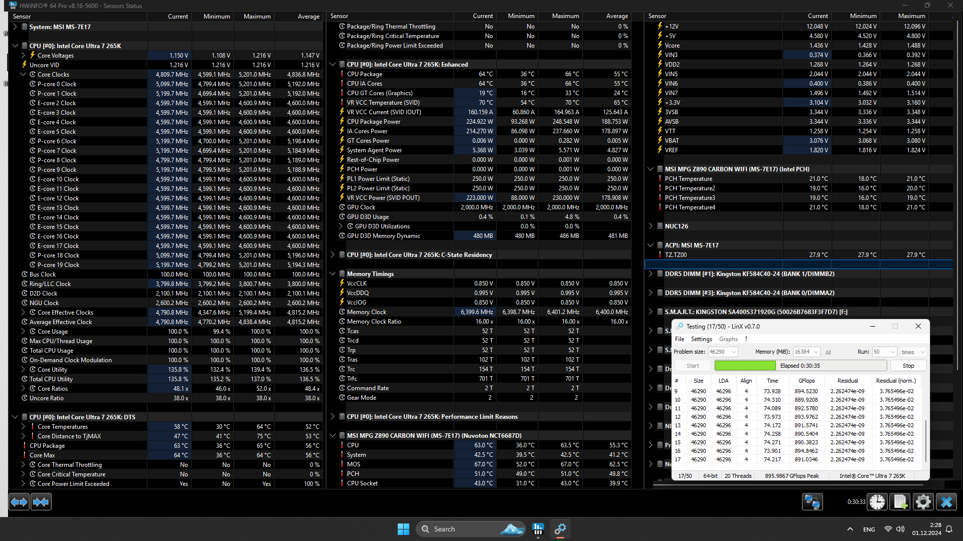 - материнская плата: MSI MPG Z890 Carbon WiFi (UEFI 1.A30);