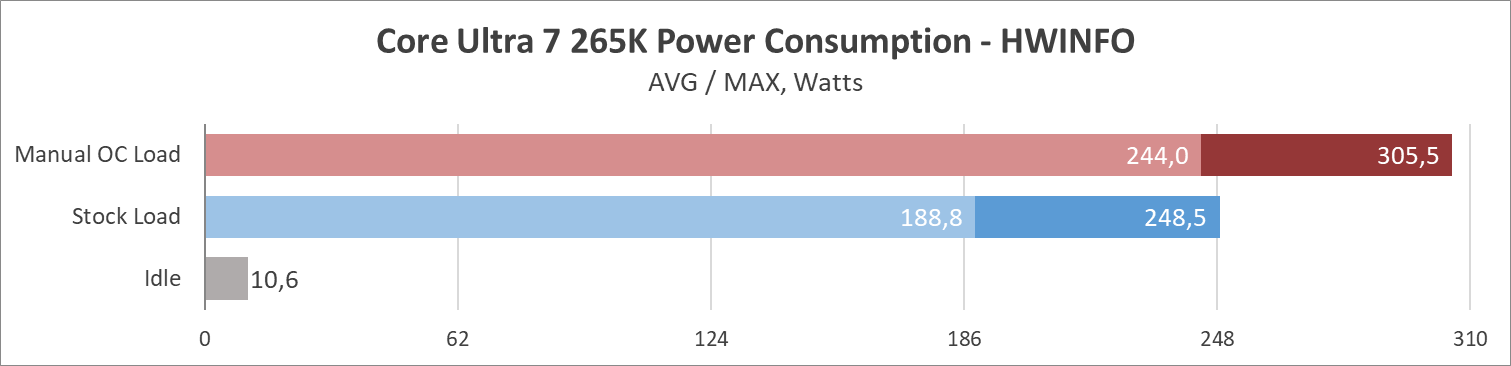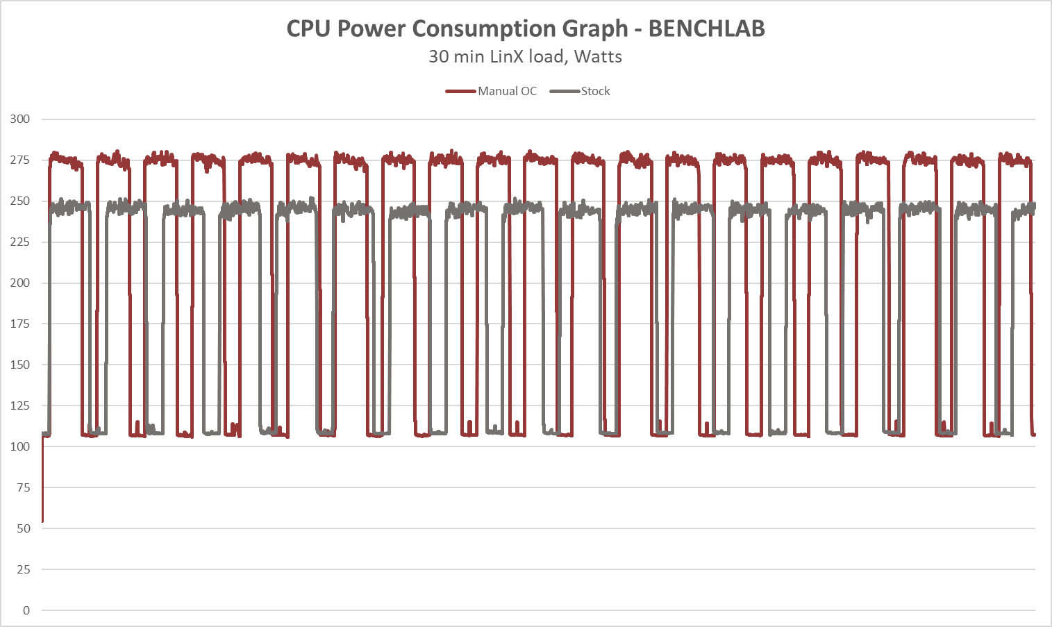 Температура в помещении удерживалась на уровне 20 градусов по Цельсию. Измерение энергопотребления процессора происходило через прямой замер EPS12V с помощью BENCHLAB (опрос датчика каждые 100 мс). Измерение температуры фиксировалось по программным датчикам HWINFO, а также с термофото, которое было выполнено тепловой камерой UNI-T RX-600. Тест представлял собой забег 30 минут LinX 0.7.0 (problem size 46290). Каждый бенчмарк запускался пять раз, в результатах указано среднее арифметическое. Игры тестировались на заводских пресетах минимального качества в стандартных бенчмарках. Counter-Strike 2 тестировался на карте мастерской CS2 FPS BENCHMARK.
