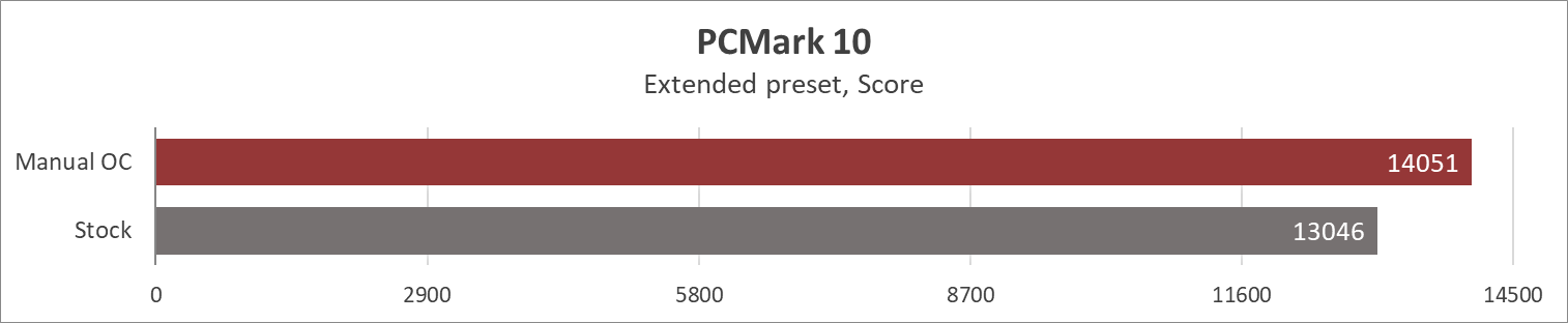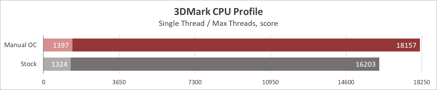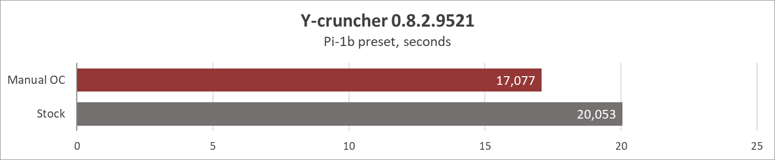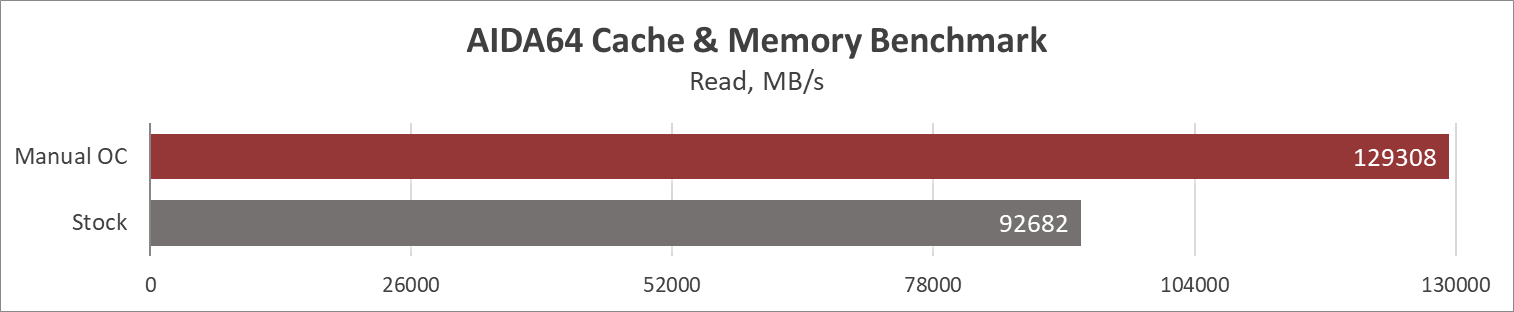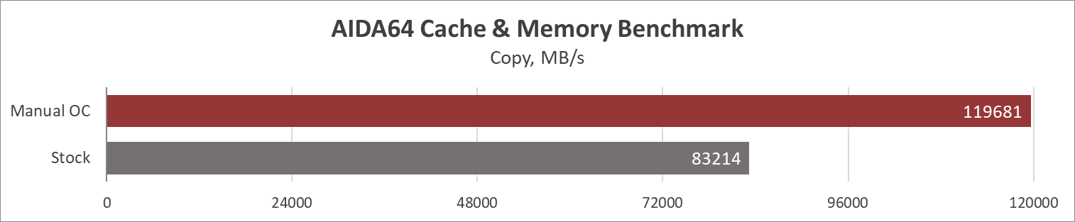 Типовые настройки аналогичны OPTIMIZED_DEFAULTS, исключение — частота памяти, установленной в режиме DDR5-6400 с таймингами JEDEC (максимальная частота без префикса «OC» в спецификациях процессора). Управление оборотами вентилятора по умолчанию — автоматическое. Для приближения к стандартным условиям эксплуатации в операционной системе Memory_integrity и Core_isolation не отключались.