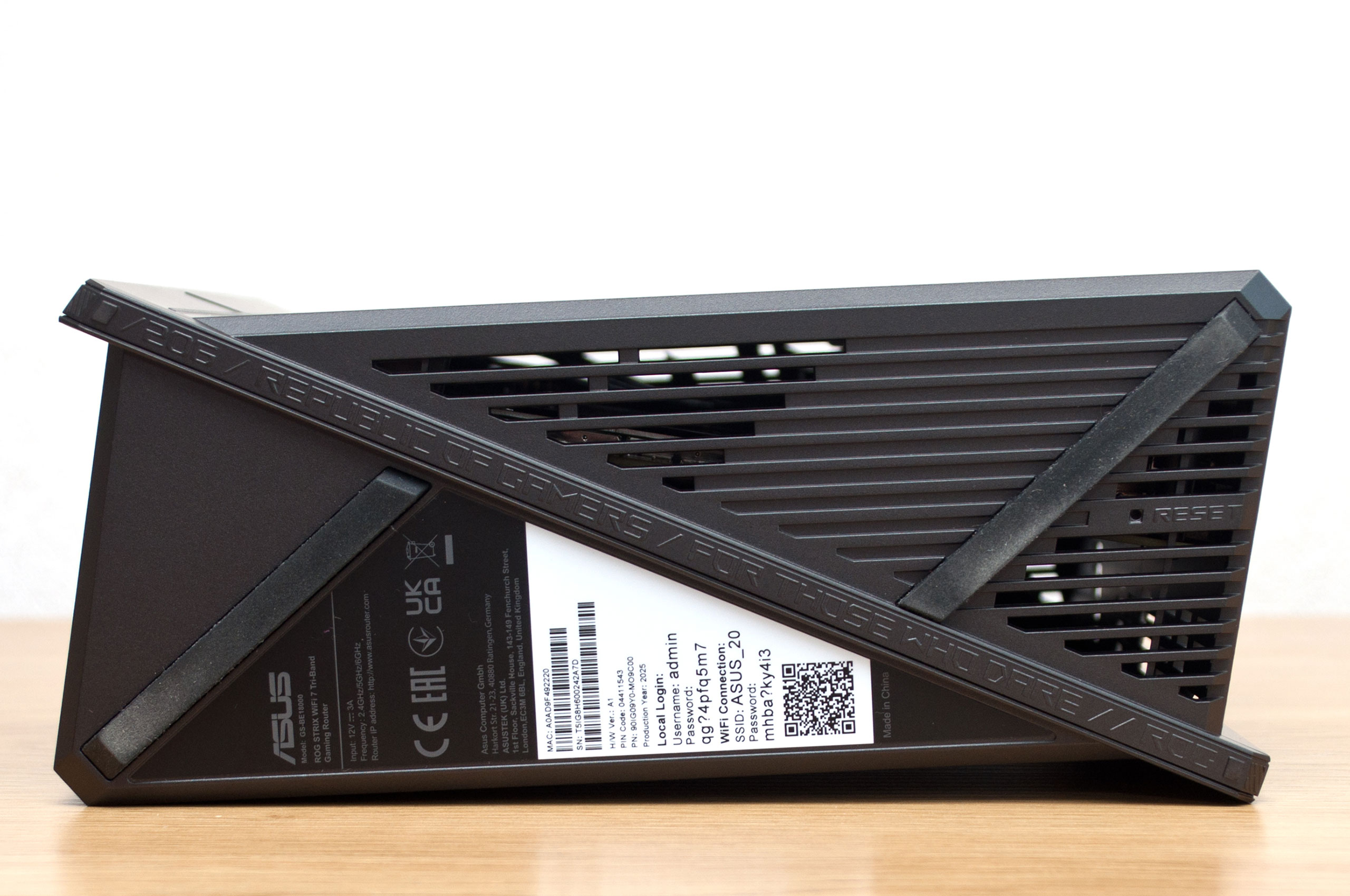 Одним из главных отличий новинки является возможность работы на частоте 6 ГГц, которая обеспечена отдельным модулем Broadcom BCM67263. Последний благодаря поддержке каналов шириной 320 МГц и MIMO 4T4R в режиме IEEE 802.11be обеспечивает пропускную способность 11529 Мбит/с, а возможность объединения ресурсов Wi-Fi во всех трех диапазонах в режим MLO определяет беспроводной класс устройства BE18000. «Не отстает» и подсистема локальной сети: она построена на базе коммутатора MxL86282C, обеспечивающего работу восьми портов 2.5G BaseT, а для связи с SoC использует два интерфейса по 10 Гбит/с каждый. В конце концов, ROG STRIX GS-BE18000 оснащен рекордным — 2048 МБ — объемом оперативной памяти стандарта DDR4-3200, а для хранения прошивки служит микросхема NAND FLASH объемом 256 МБ.