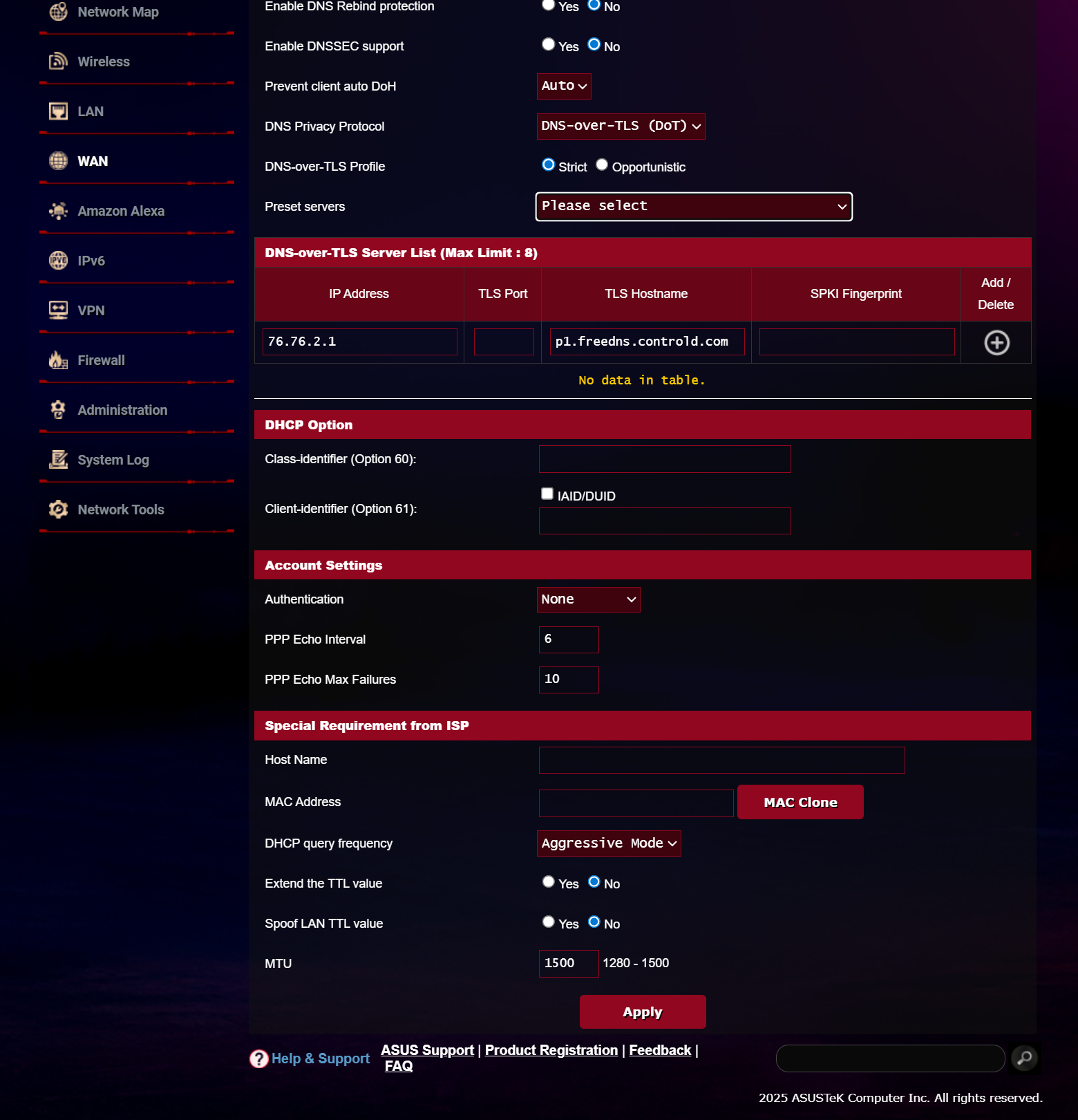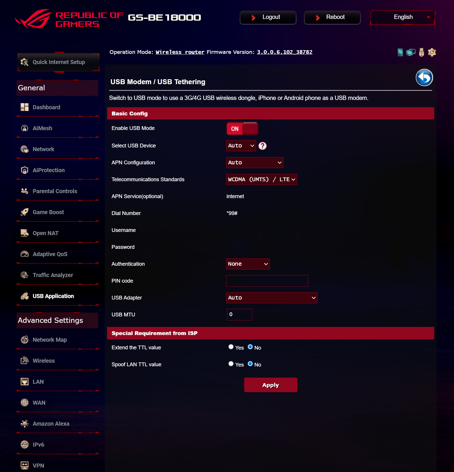 Опытные пользователи могут управлять многими настройками беспроводных сетей, подсистемами LAN и подключением к оборудованию Интернет-провайдера. Отдельно следует отметить функцию DualWAN, позволяющую организовать резервный канал в Интернет, в том числе с помощью USB-модема или смартфона с поддержкой сотовых сетей 4G/5G.