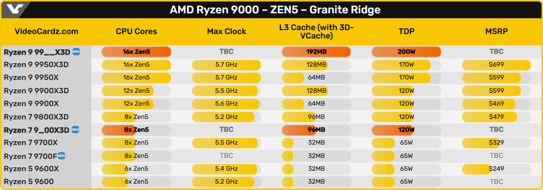 Мы уже знаем, что в ближайшее время AMD продолжит расширять ассортимент процессоров Zen 5 для платформы AM5, выпустив Ryzen 7 9700F с деактивированной графикой и новые модели Pro-серии. Однако на этом компания останавливаться не будет. Если верить неофициальным источникам, «красные» также готовят новые X3D-чипы, включая флагманский 16-ядерник со впечатляющим объёмом кэш-памяти третьего уровня.