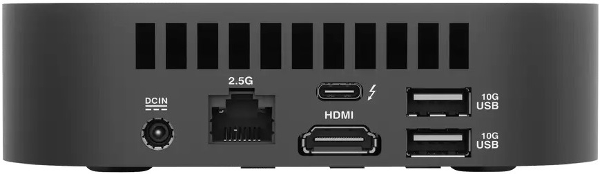 Сетевые возможности представлены 2,5-гигабитным Ethernet и беспроводным модулем Wi-Fi 7/Bluetooth 5.4. На гранях корпуса NUC 14 Pro AI доступны два порта USB 3.2 Gen2 Type-A, пара USB 3.2 Gen1 Type-A, видеовыход HDMI, комбинированный 3,5-мм аудиоразъём и два порта Thunderbolt 4. Из прочего можно отметить встроенный сканер отпечатков пальцев. За питание отвечает внешний адаптер номиналом 120 Вт.