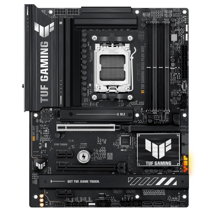 Старшая модель этой линейки — это полноформатная ASUS TUF Gaming B850-Plus WiFi. Плата готова к использованию видеокарт PCIe 5.0 и накопителей SSD PCIe 5.0, а также предлагает полноценную поддержку Wi-Fi 7. Система PCIe Slot Q-Release упрощает изъятие видеокарты из слота. Система ASUS M.2 Q-Latch разрешает безинструментальную установку накопителей. BIOS FlashBack позволяет обновлять прошивку платы даже без установленного процессора.