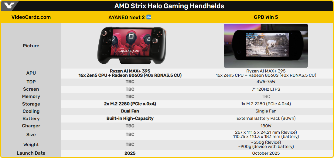 Производители портативных игровых систем готовятся взять на вооружение процессоры AMD Ryzen AI Max 300 (Strix Halo) с мощной встроенной графикой. Недавно устройство на базе этой платформы представила компания GPD, а теперь к ней присоединилась фирма AyaNeo. В отличие от конкурента, её новинка получила встроенный аккумулятор, пусть и за счёт больших габаритов.
