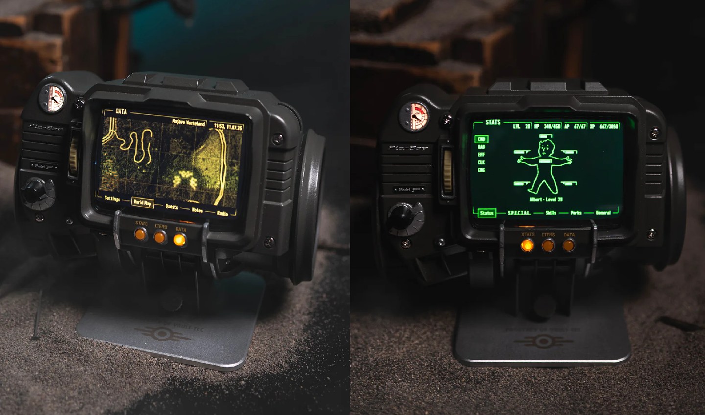 Гаджет полностью повторяет прибор из Fallout 3 и Fallout New Vegas в масштабе 1:1. Корпус выполнен из металла и ABS-пластика. Манжета выполнена из мягкого пенистого материала с эффектом памяти для удобства пользователя. Экран на основе IPS-матрицы отражает разную игровую информацию. Но по факту это лишь игрушка и атрибут для фанатов. А его главной функциональной ценностью является возможность использовать Pip-Boy 3000 в качестве электронных часов с будильником.