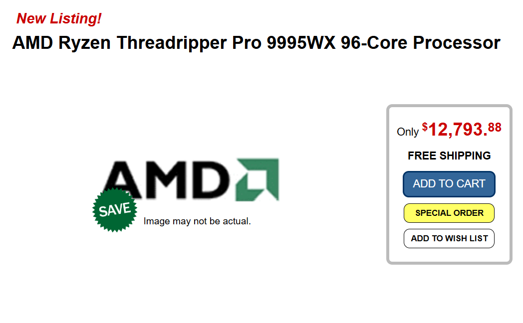 В ближайшее время компания AMD запустит официальные продажи нового поколения процессоров Ryzen Threadripper, выполненного на архитектуре Zen 5, и партнёры чипмейкера уже активно готовятся к этому событию. Флагманский Ryzen Threadripper PRO 9995WX на днях был замечен в зарубежных магазинах с ценой около €12 300 в Европе и около $12 800 в США.