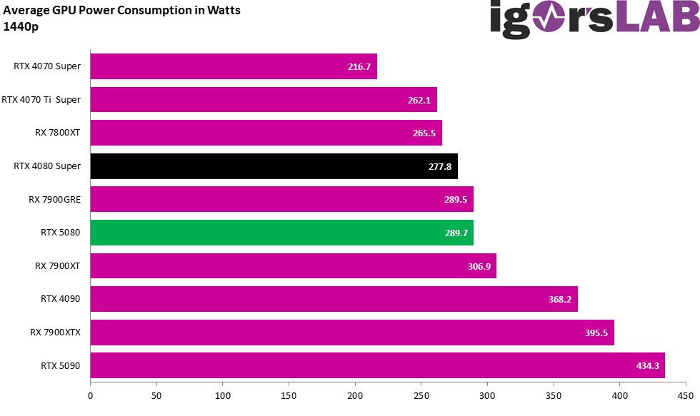 Тестирование проводилось в играх Assassin’s Creed Mirage, Starfield, Horizon Zero Dawn Remastered, Shadow of the Tomb Raider, F1 2024, The Talos Principle 2, The Last of Us, Cyberpunk 2077, Alan Wake 2, Black Myth: Wukong и Avatar: Frontiers of Pandora. Также приводится информация об энергопотреблении GeForce RTX 5080. В играх оно составит около 290 Вт, что на 12 Вт больше по сравнению с GeForce RTX 4080 Super.