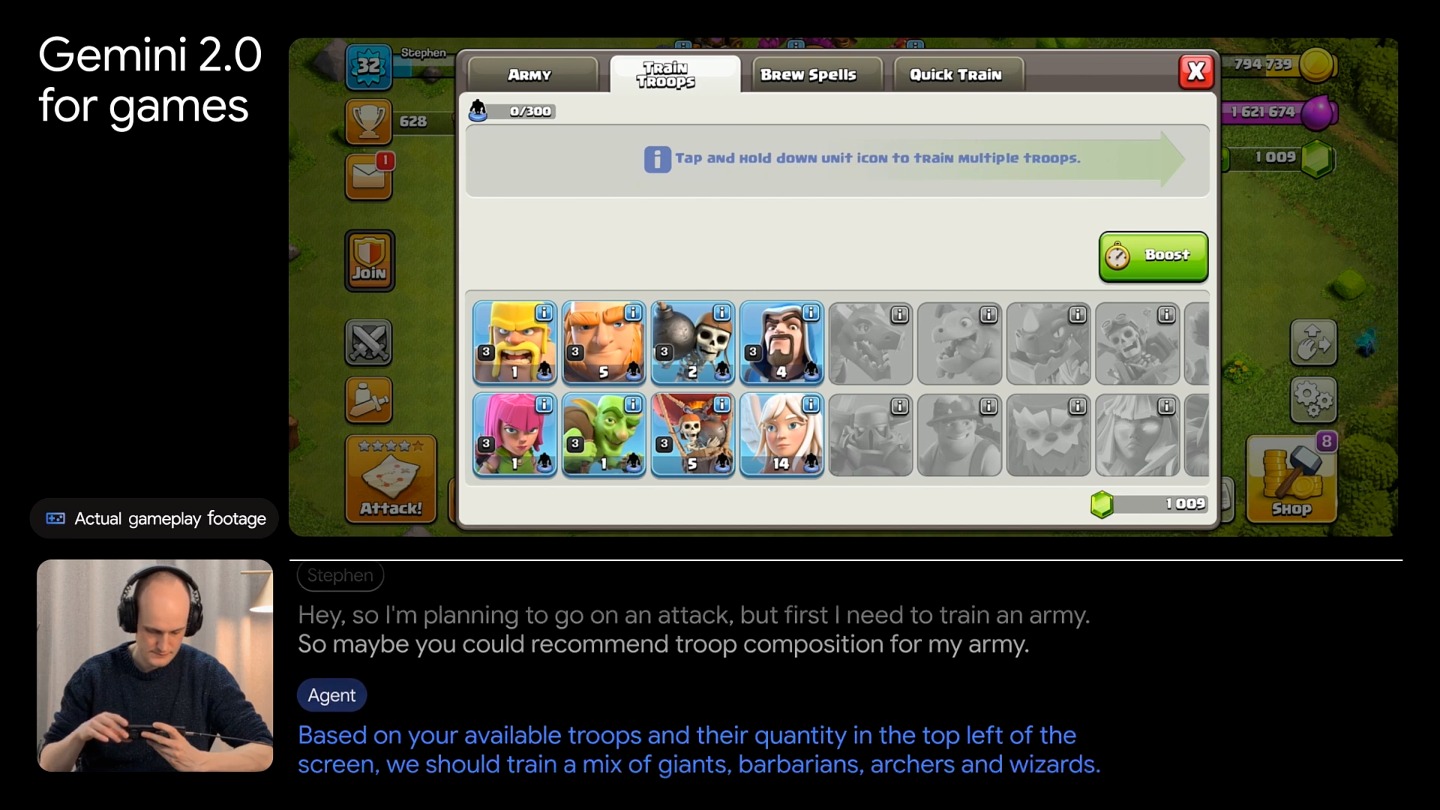 Заявлено, что разработчики сотрудничают с компанией Supercell (Clash of Clans) и другими представителями игровой индустрии, чтобы тестировать возможности ИИ-агента в и учить его правильно интерпретировать правила и задачи в разных играх. То есть пока все это работает на тестовом уровне, но вскоре мы можем увидеть и рабочую публичную версию такого ИИ-агента. Сам Gemini 2.0 в версии Pro будет официально запущен в начале следующего года.