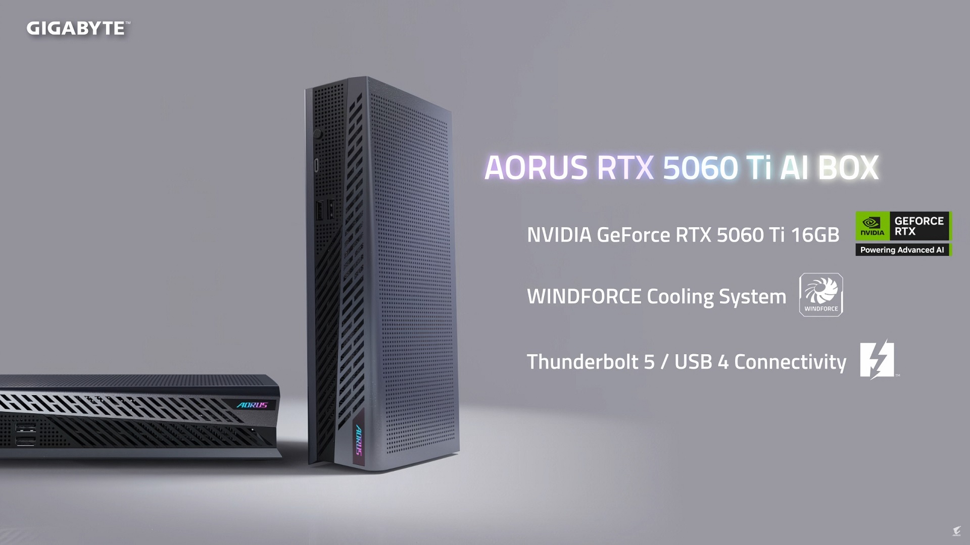 Рекомендованная цена и дата релиза Gigabyte Aorus RTX 5060 Ti AI Box будут объявлены позже.