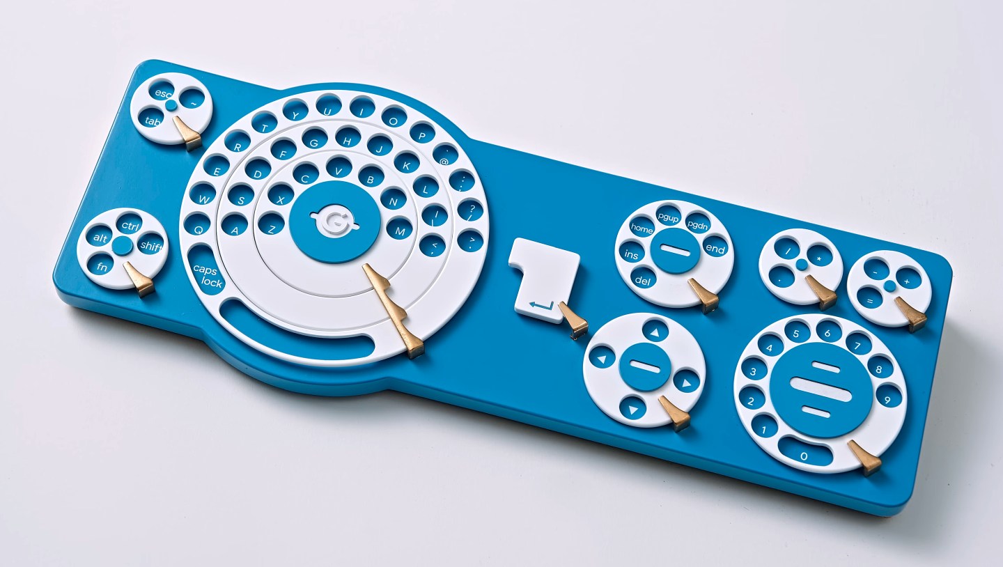 Вместо привычных клавиш на этой клавиатуре расположено несколько дисков с символами, прямо как на старых телефонах. Это гибридная клавиатура, которая сочетает современные цифровые технологии с механической обратной связью. Создатели называют это революцией, которая опережает время. Теперь не нужно стучать по квадратным клавишам, если вы злитесь. А жужжание при повороте дисков успокаивающе воздействуют на пользователя после привычного клацанья.