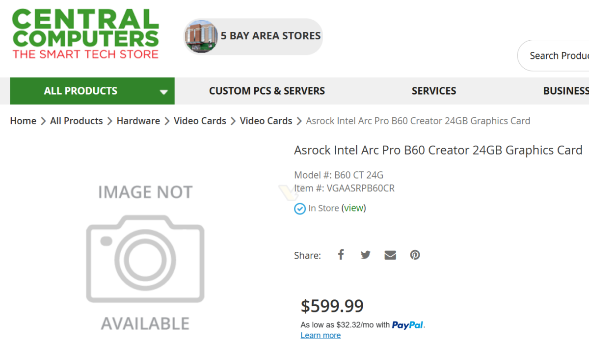 В частности, модель ASRock Arc Pro B60 Creator, оборудованная «турбиной», предлагается заокеанским ритейлером Central Computers за $599,99. Это существенно ниже цены в $1000–1200, за которую Arc Pro B60 ранее была доступна через неофициальные каналы. Более того, новинка станет самой дешёвой видеокартой, оборудованной 24 гигабайтами памяти. О спецификациях Intel Arc Pro B60 мы рассказывали в материале по случаю анонса.