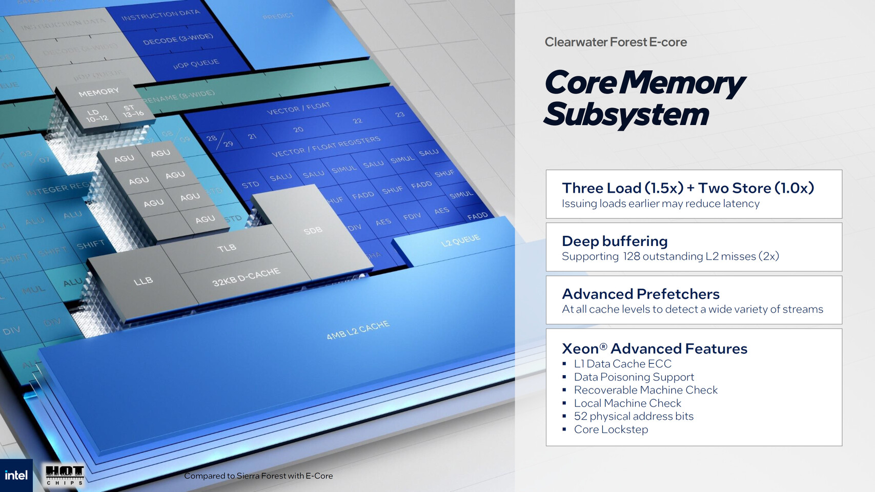 На конференции Hot Chips 2025 корпорация Intel поделилась новыми подробностями о серверных процессорах Clearwater Forest. Одной из главных особенностей этих «камней» станет технология производства Intel 18A, которая, к примеру, также будет использоваться для выпуска мобильных чипов Panther Lake. Новое семейство придёт на смену CPU Sierra Forest и содержит только энергоэффективные ядра.