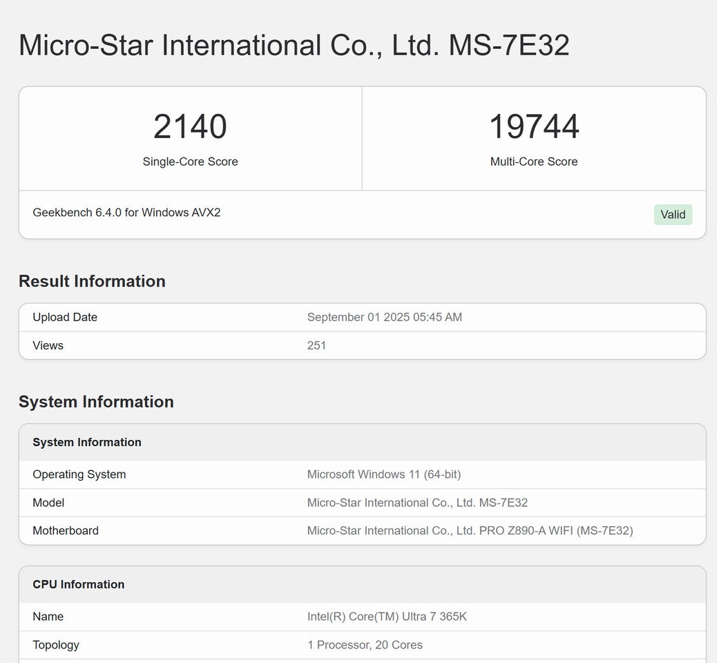 Онлайн-база тестового пакета Geekbench вновь послужила источником подробностей о готовящихся к выпуску продуктах. На этот раз в ней был замечен процессор Intel Core Ultra 7 365K в конструктивном исполнении LGA1851. Судя по всему, это один из первых представителей семейства Arrow Lake‑S Refresh, чей релиз должен состояться до конца этого года.