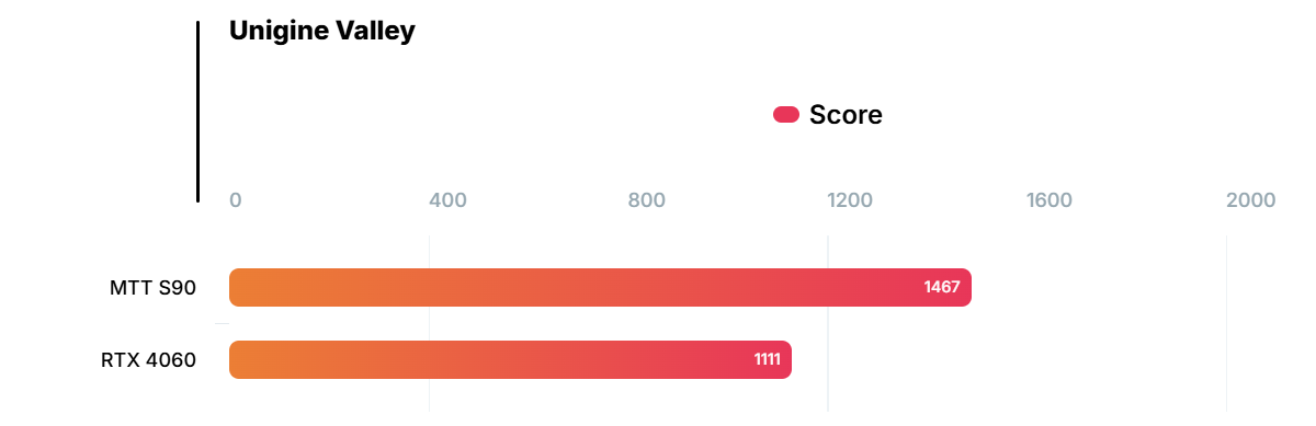 Китайский блогер протестировал Moore Threads MTT S90 в нескольких играх и бенчмарках, где показано, что новинка способна конкурировать с GeForce RTX 4060. В тестах 3DMark и Unigine Valley их результаты очень близки.