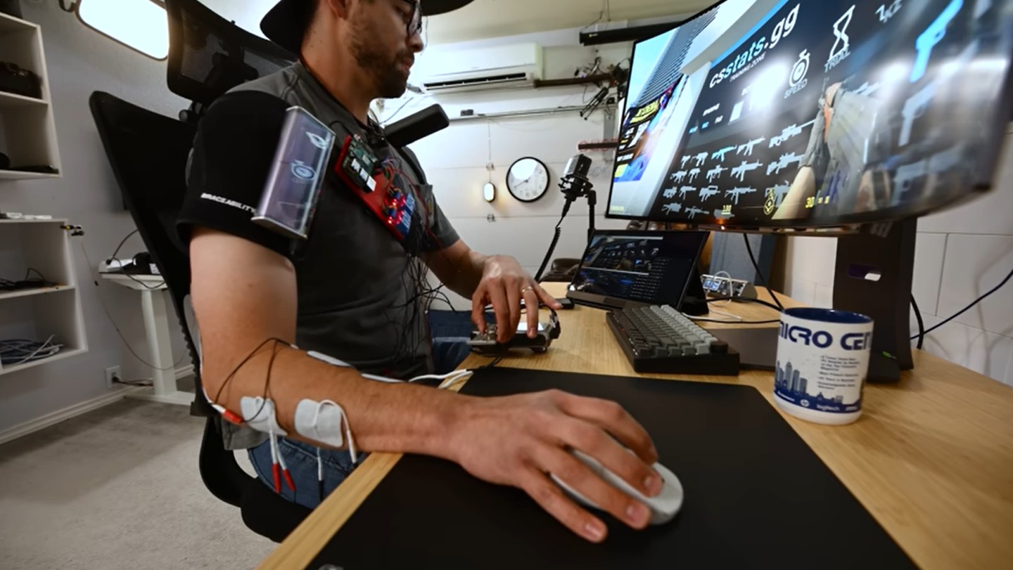 Блогер с канала Basically Homeless показал необычную разработку, которая позволяет контролировать мышцы руки с помощью электрических импульсов для быстрой реакции и прицеливания в шутерах. Это сложная система, которая определят врага и посылает импульсы в руке, ускоряя прицеливания. Можно сказать, что это новый метод реализации чита с автоматическим прицеливанием, но теперь на нейрофизиологическом уровне.
