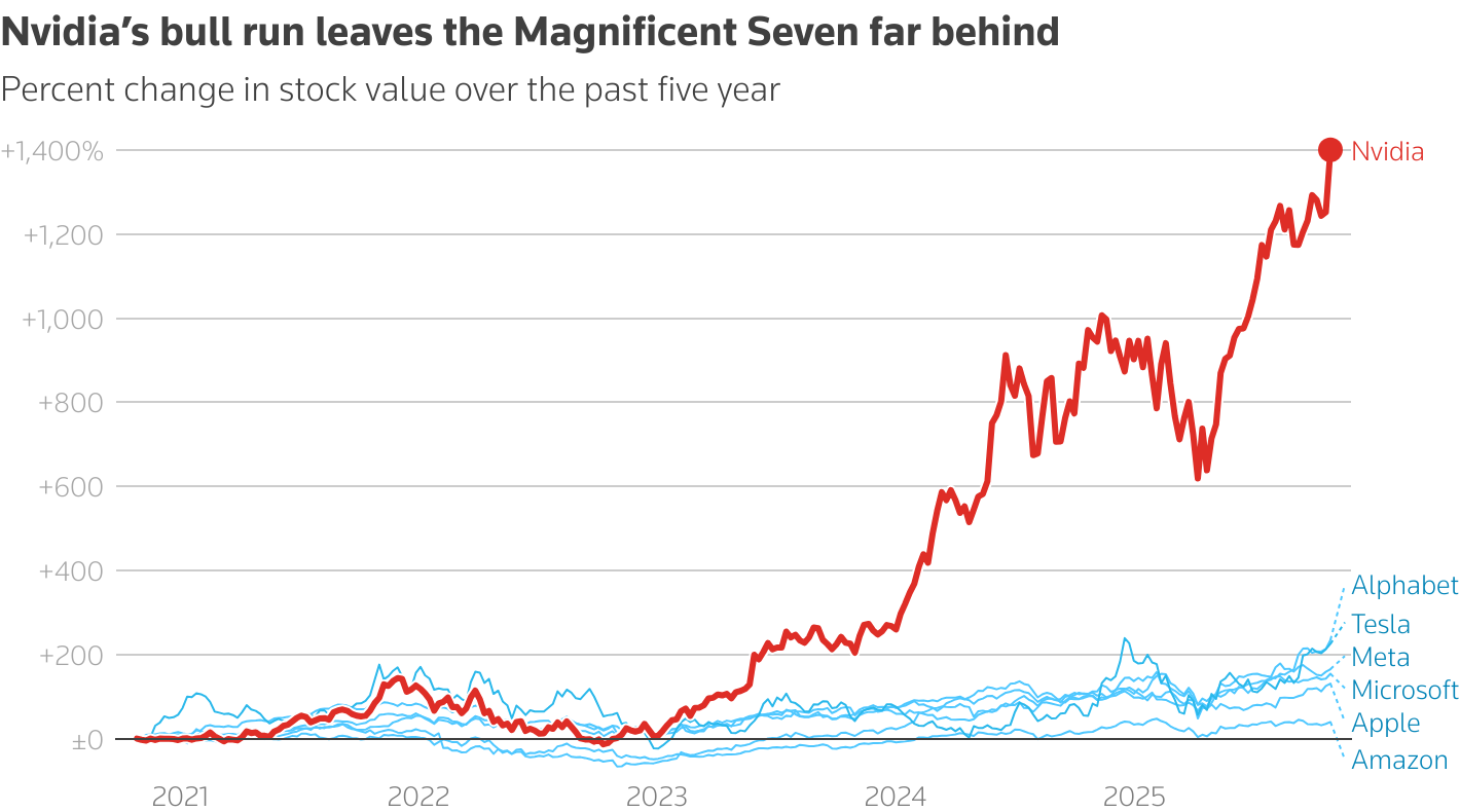 В последние годы корпорация NVIDIA регулярно ставит финансовые рекорды. Ажиотаж вокруг технологий искусственного интеллекта не только обеспечил «зелёным» огромную выручку, но и сделал её самой дорогой в мире компанией. Более того, последние анонсы NVIDIA на конференции GTC привели к новой волне роста стоимости ценных бумаг, в результате чего она стала первой в истории компанией с рыночной капитализацией более пяти триллионов долларов. Отметим, что десять лет назад этот показатель составлял около $10 миллиардов.