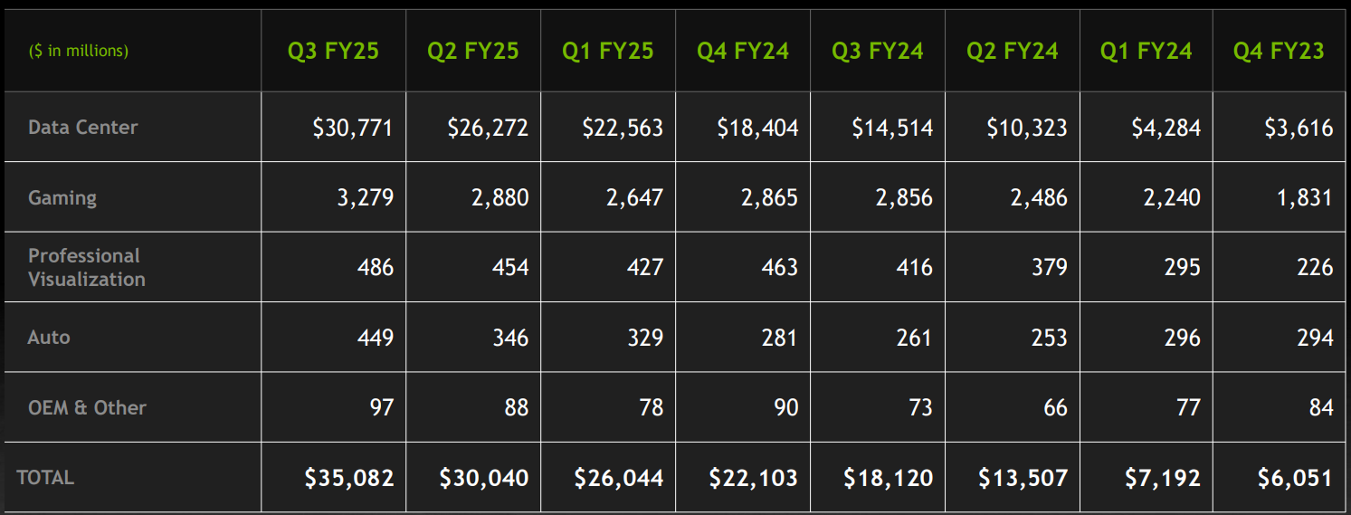 Уже много кварталов подряд львиную долю доходов Nvidia получает от продажи решений для дата-центров. В прошлом квартале соответствующее подразделение принесло компании почти $30,8 млрд (+112% относительно прошлого года). На этом фоне выручка игрового подразделения «зелёных» выглядит достаточно скромно — $3,28 миллиарда долларов (+15% относительно 2023-го).