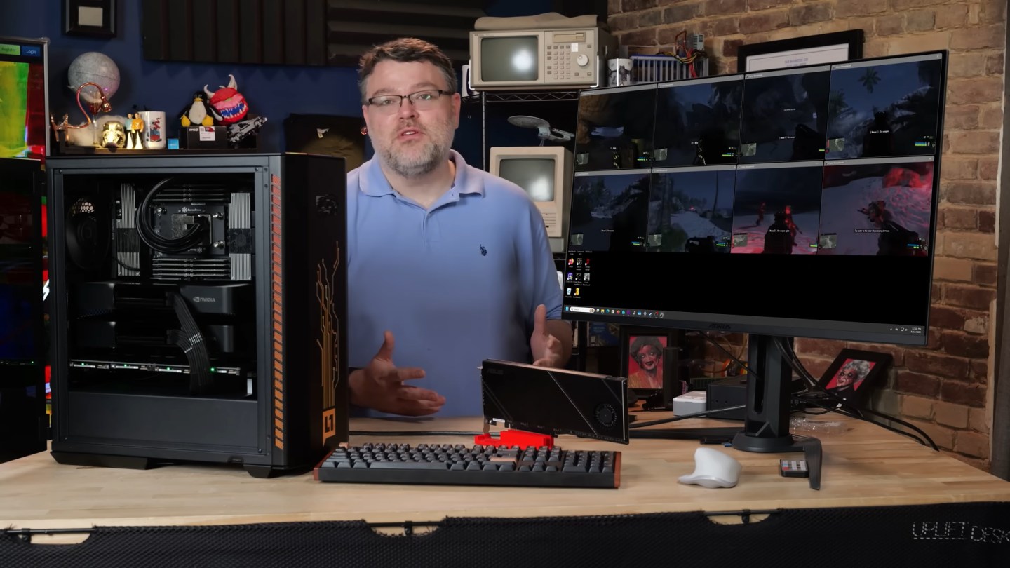 Тестировалась рабочая станция от компании Falcon Northwest. Кроме топового процессора Ryzen Threadripper Pro 9995WX на архитектуре Zen 5 с 96 ядрами (192 потока) она также оснащена 256 ГБ оперативной памяти и двумя профессиональными видеокартами NVIDIA RTX 6000 с общим объемом видеопамяти 192 ГБ. А базой для сборки послужила материнская плата Asus WRX90 Sage SE. Видео начинается с вопроса: «А Crysis на нём запустится?». Автор тут же дает ответ: «На самом деле нет, оригинальный Crysis вылетает при таком объёме видеопамяти, но вы можете запустить 8 копий Crysis, потому что каждая в таком случае получит по 24 ГБ видеопамяти».