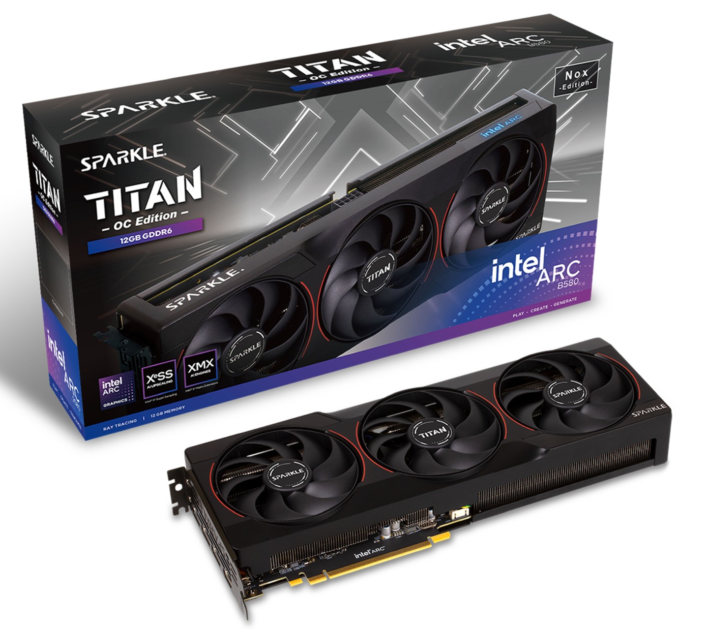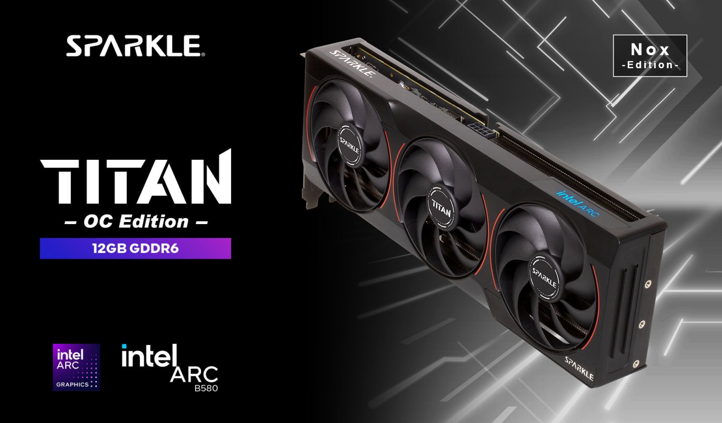 Компания Sparkle расширяет модельный ряд видеокарт собственного производства. Когда-то она была известна потребителям по видеокартам NVIDIA, но сейчас выпускает исключительно графические ускорители от Intel. Ранее компания представила несколько вариантов Arc B580 в белом и синем цвете, а теперь анонсировала видеокарту Arc B580 Titan Nox Edition OC в строгом стильном дизайне и черном цвете.