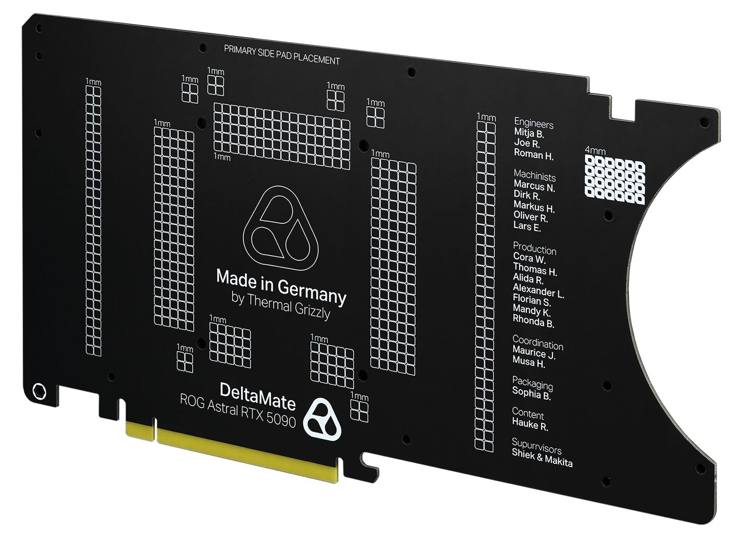 Из особенностей водоблока Thermal Grizzly DeltaMate для карт ASUS ROG Astral GeForce RTX 5090 производитель отмечает 0,2‑мм микрорёбра для более эффективного отвода тепла, окно с RGB-подсветкой и высокоточное производство на фабрике в Германии. Как и подобает full-cover водоблок, новинка отводит тепло от самого графического процессора NVIDIA GB202, микросхем памяти GDDR7 и элементов системы питания. Для интеграции в контур СЖО понадобятся фитинги типоразмера G1/4.